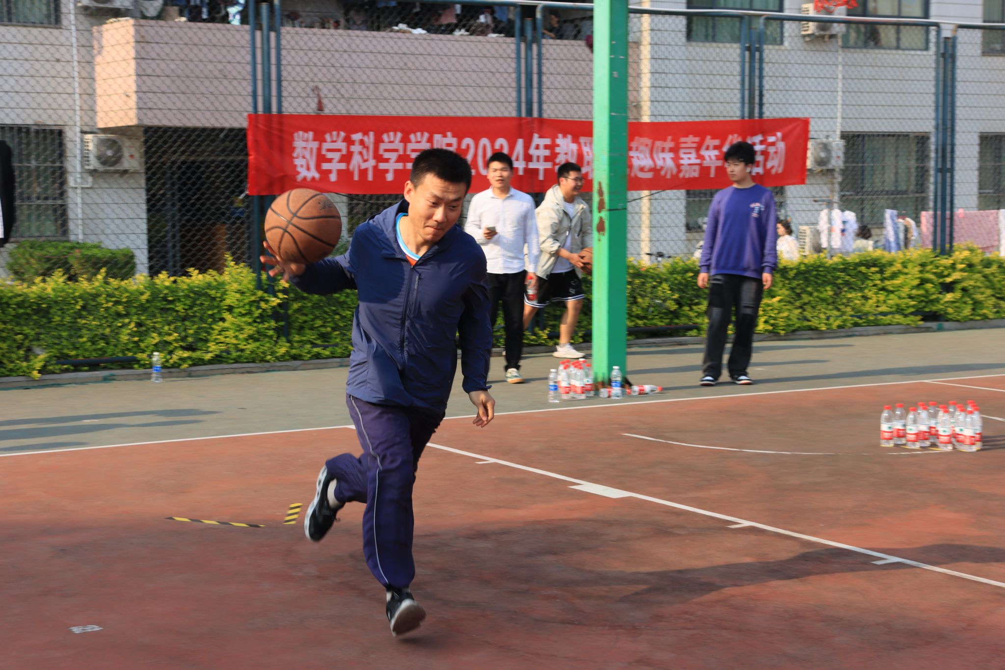 比赛项目丰富多样,既有沙包投准、一分钟跳绳、定点投篮和套圈等个人项目的角逐,也有三人四组和运篮球接力跑的团体项目的较量。在激烈角逐的个人项目中,教职工们用自己的汗水和努力,展现了他们卓越的风采和实力;在团队项目中,教职工们更是以默契配合和团队协作将比赛推向高潮。在此次运动会中,教职工们不仅展现了出色的体育竞技水平,更彰显了积极向上的精神风貌和团结协作的团队精神。他们相互鼓励、相互支持,共同为团队荣誉而奋斗。