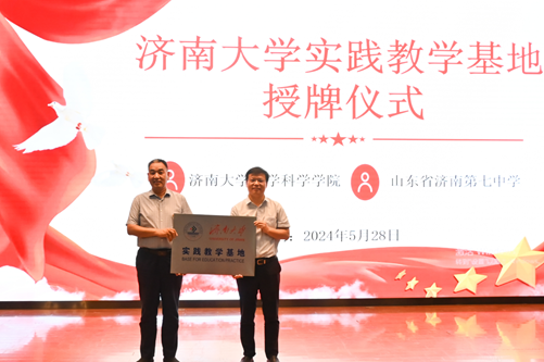 5月28日,买球官方网站在济南第七中学报告厅举行了实践教学基地揭牌仪式。济南第七中学校长刘汉路、办公室主任李静、数学组教研组长程凤霞、买球官方网站副院长王洪凯、数学与应用数学系教师代表,以及来自数学与应用数学专业的140名本科生共同参加了本次活动。