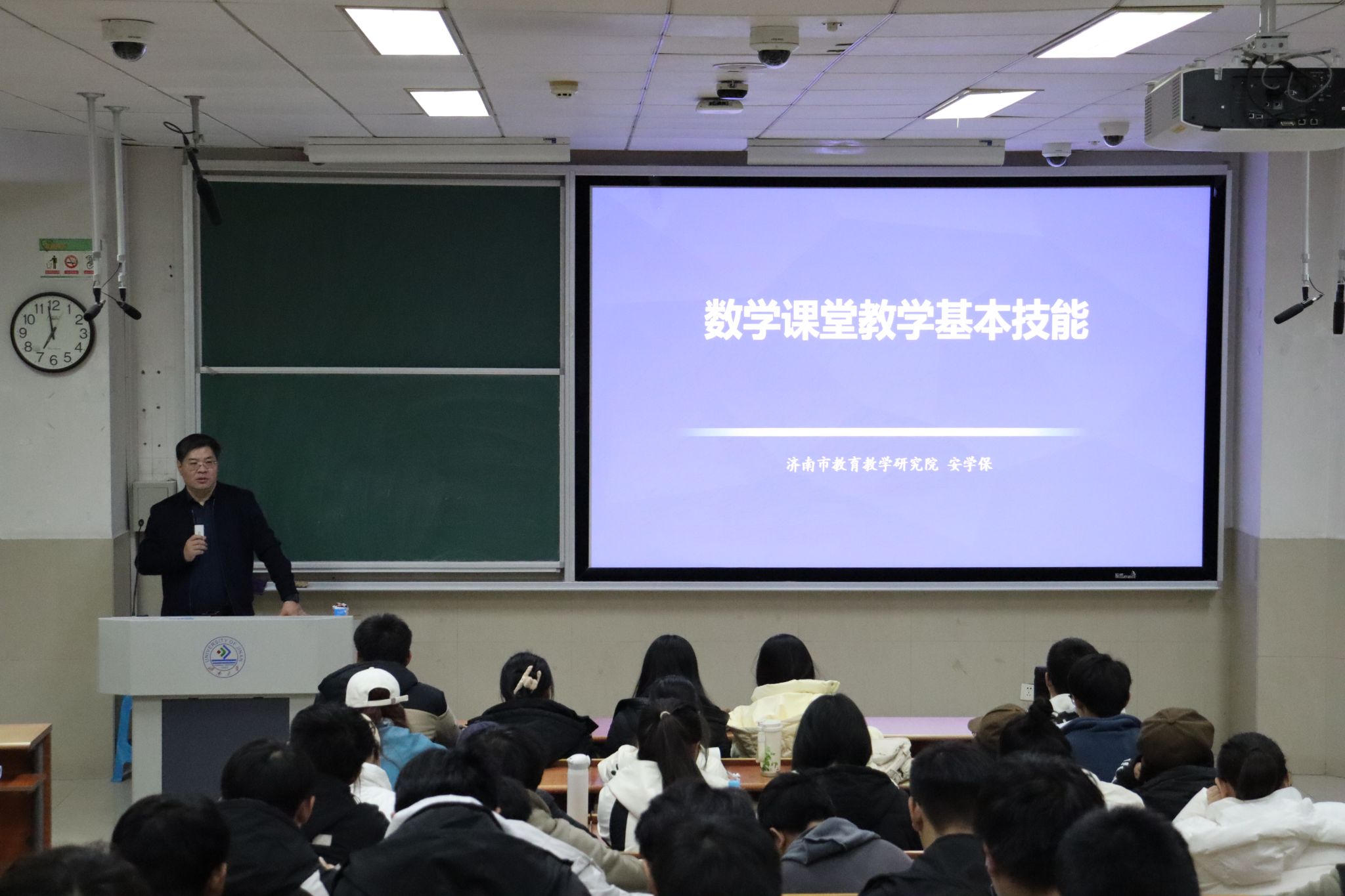 “师心铸智海,桃李自成蹊。”为加强数学与应用数学师范类专业学生专业素养,11月5日,买球官方网站特邀济南市教育科学研究院高中数学教研员安学保老师作“数学课堂教学基本技能”的主题报告,学院数学与应用数学专业学生参加活动,数学与应用数学系主任陈文娟教授主持报告会。