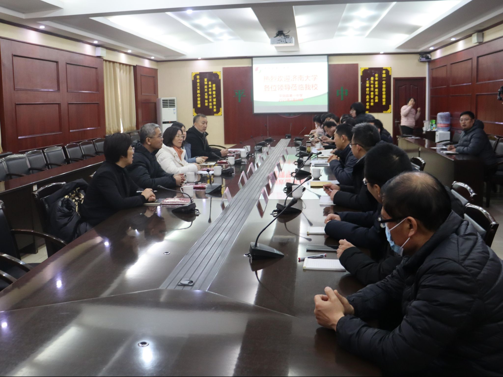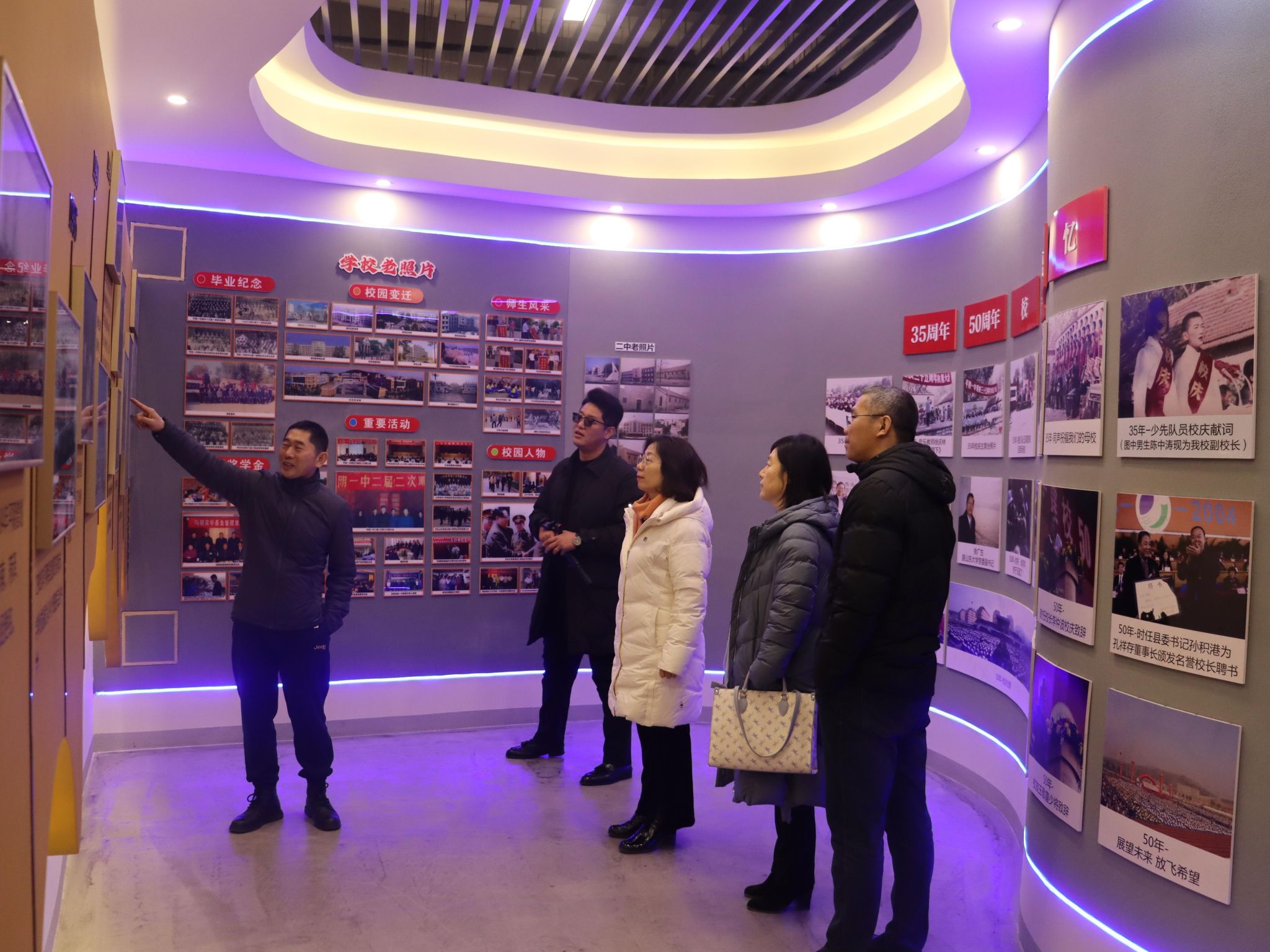 座谈环节,王霞一行与平阴县第一中学的领导和校友们亲切交流,分享经验,共话未来。座谈交流后,双方合影留念并参观了学校的校史馆和创客中心。