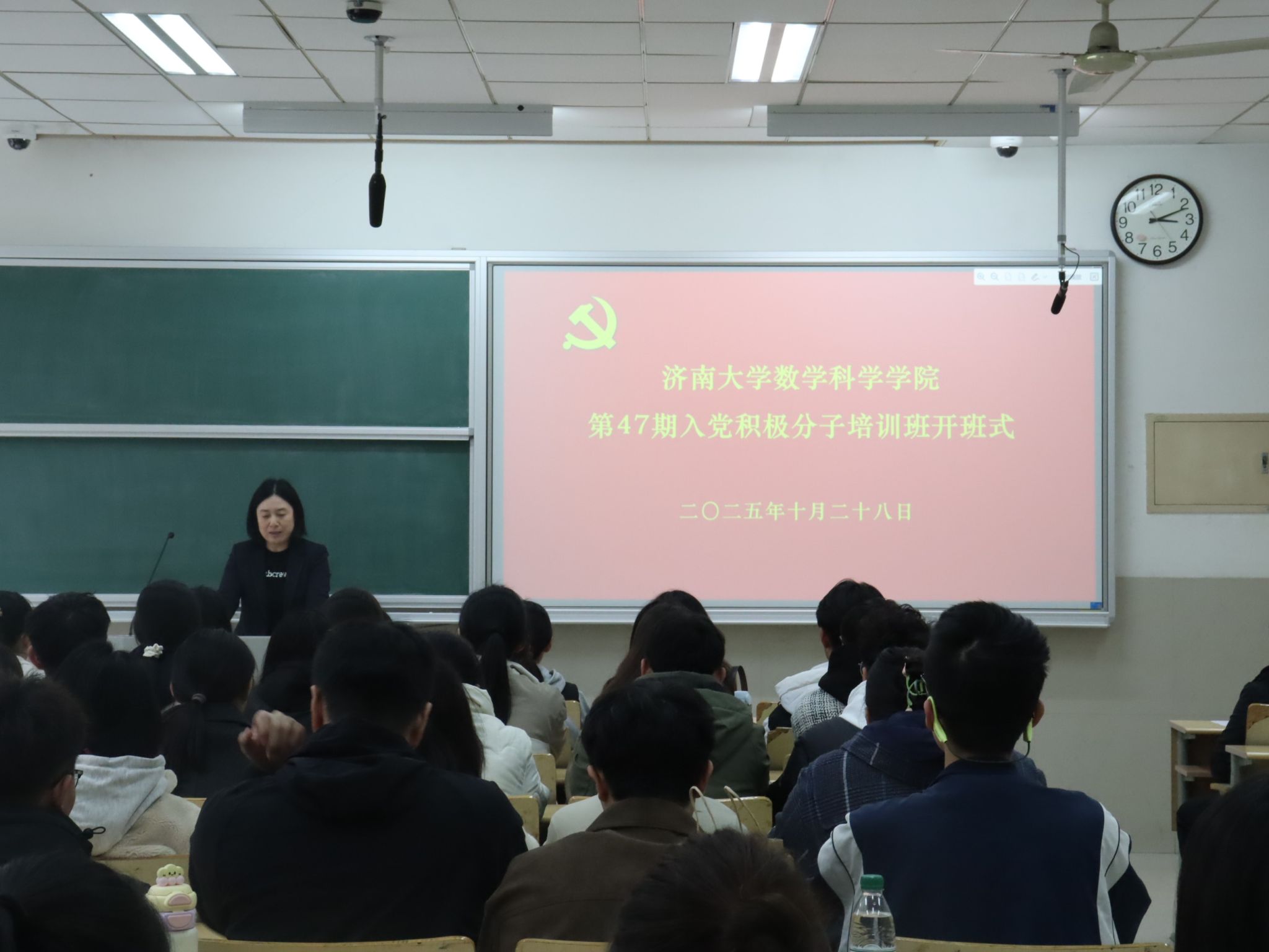 开班式上,崔英静详细阐述举办入党积极分子培训班的重要意义、目标任务和整体教学安排。她强调,参加集中培训是入党过程中的重要环节,是提高思想觉悟、深化对党的认识的重要途径。崔英静勉励全体学员要深刻认识树立正确入党动机的必要性,珍惜学习机会,坚持理论联系实际,在日常学习生活中自觉用党员标准严格要求自己,以实际行动积极向党组织靠拢,不断筑牢信仰之基,争取早日达到党员标准。