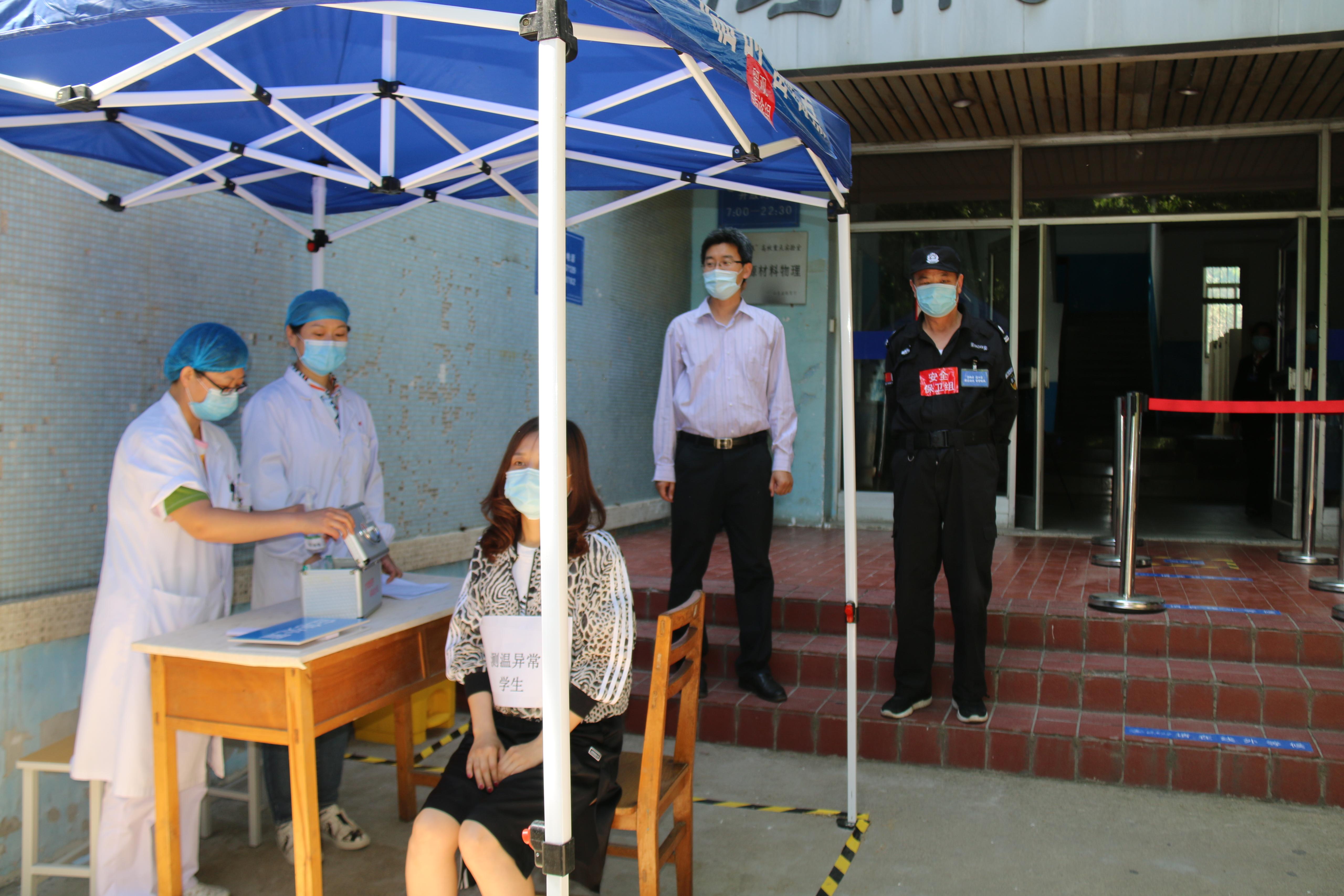 在5月18和19日的集中应急演练环节中,学院结合办公场所、教学场所和实验场所不同特点和学生返校后学习需要,研究确定了教学楼入口、教室内学生自感异常、机房授课教师自感异常等三个场景,按照培训流程,逐一向参训人员进行了讲解。随后,学院新冠肺炎疫情防控工作领导小组组织所有教工分三个批次开展了演练,学院的实战演练得到了学校领导、疫情防疫办公室、学生工作处、安全管理处、后勤管理与基建处、医院等部门的大力支持和积极配合。