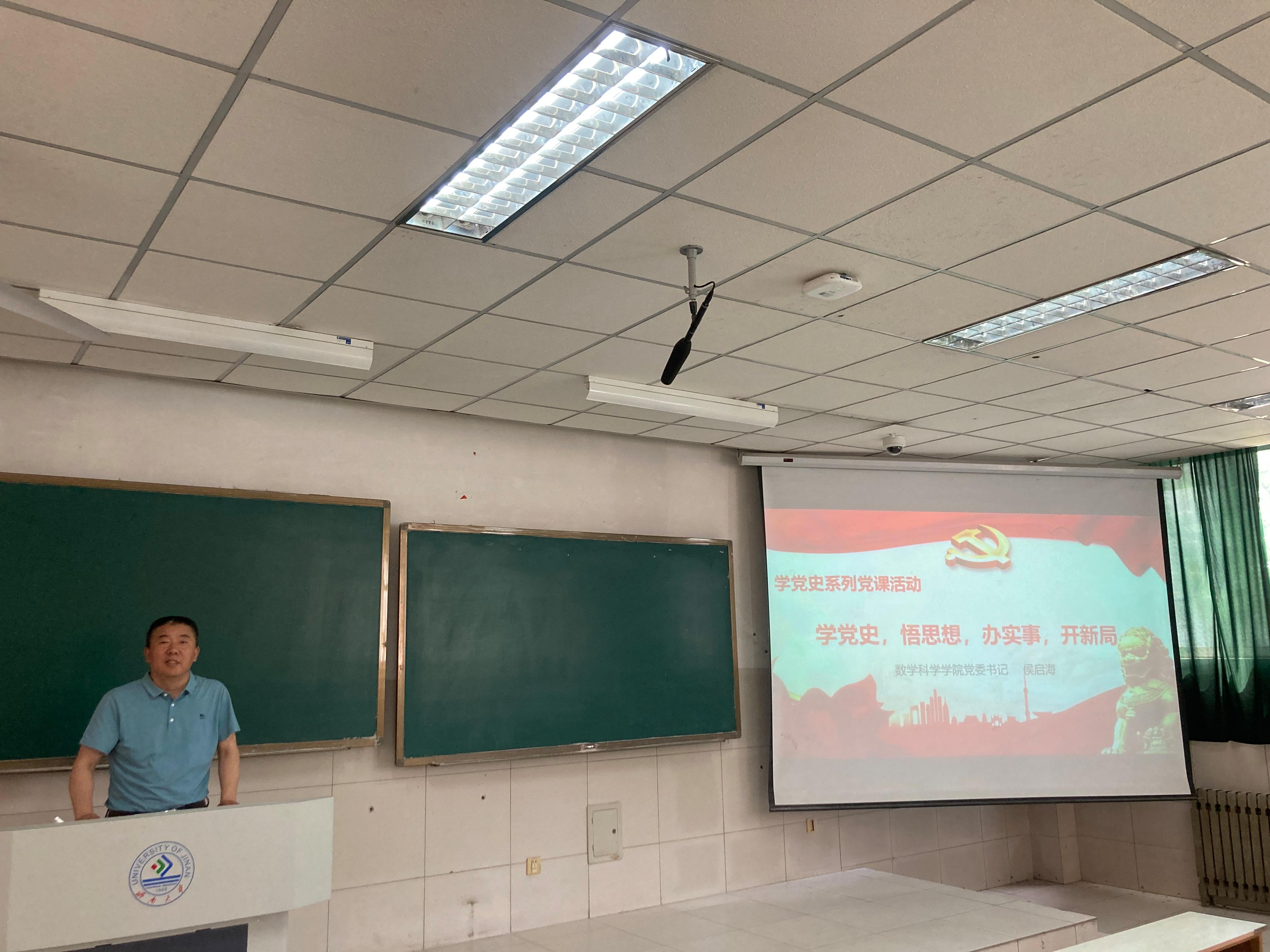 学院党委书记侯启海作培训动员,着重强调了培训的目的、意义以及学习纪律。随后,侯书记讲授了学党史系列党课活动的第一部分《为什么学党史》。侯书记从中国共产党走过的百年辉煌历程、坚持用唯物史观来认识历史,坚持实事求是的思想路线、中国革命历史是最好的营养剂等九个方面系统论述了为什么要学习党史以及学习党史的重要意义,要求同学们通过学习党史弄清楚、搞明白我们从哪里来、到哪里去这两个重要问题。侯书记表示,习近平总书记在党史学习教育动员大会上的讲话中强调,“全党同志要做到学史明理、学史增信、学史崇德、学史力行,学党史、悟思想、办实事、开新局,以昂扬姿态奋力开启全面建设社会主义现代化国家新征程,以优异成绩迎接建党一百周年。”这些都是我们党对党的历史的一贯立场和态度,体现了我们党对学习运用党的历史重要性和必要性的深刻认识。因此,我们每一个党员,每一个人都应党学习和了解党的发展历史。