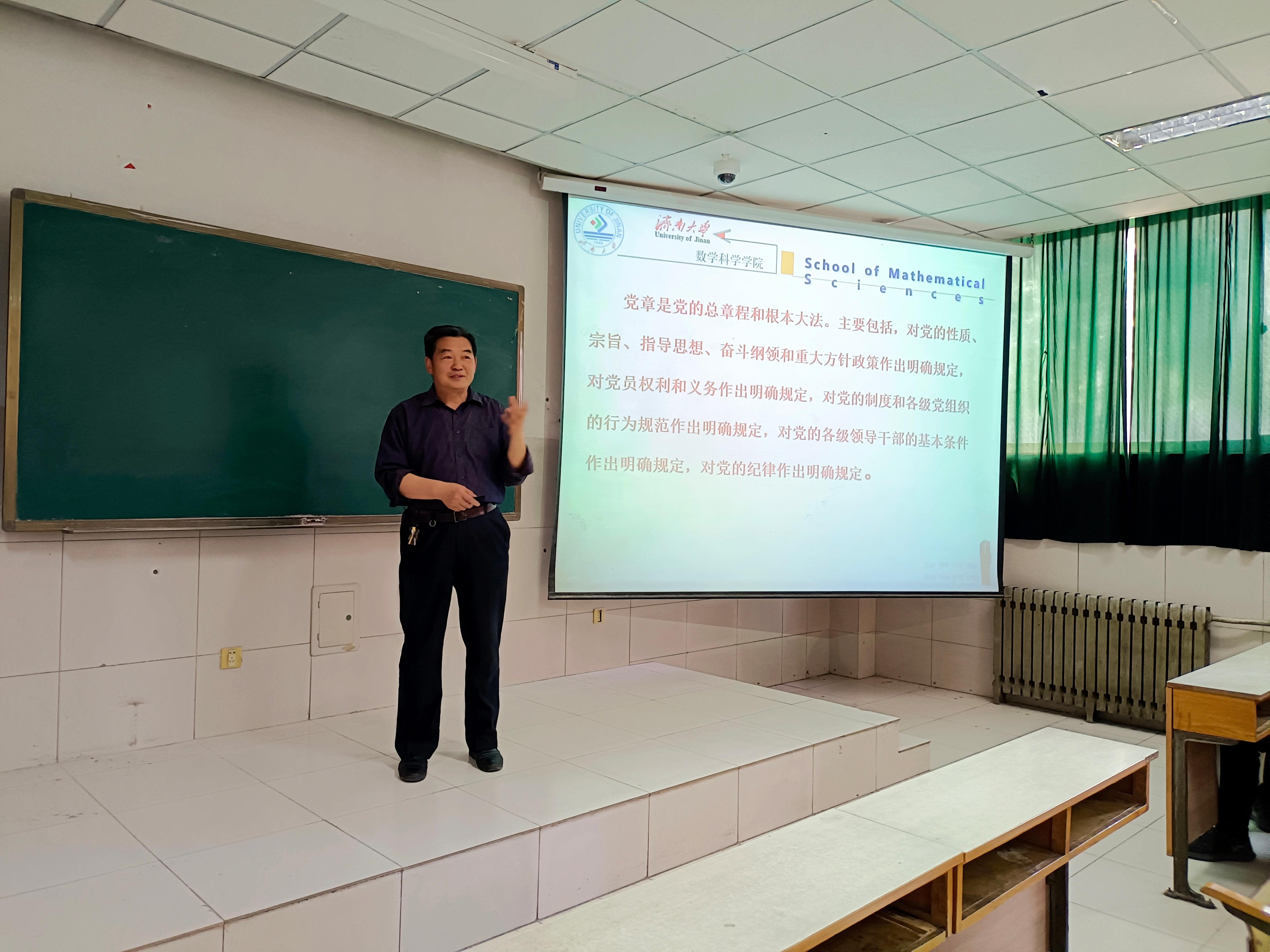 学院正处级组织员韩振来为入党积极分子讲解党章、党规,教育引导入党积极分子自觉遵守和拥护党的规章、纪律。韩振来老师带领大家回顾了党章的历史,加深了入党积极分子对党的理解和认识,更加深刻地认识到新党章的丰富内涵和重要地位,并要求同学们提升入党的自觉意识,提高理论水平,端正入党动机,坚定理想信念,真正做到通过党章的学习改变做人做事的态度。
