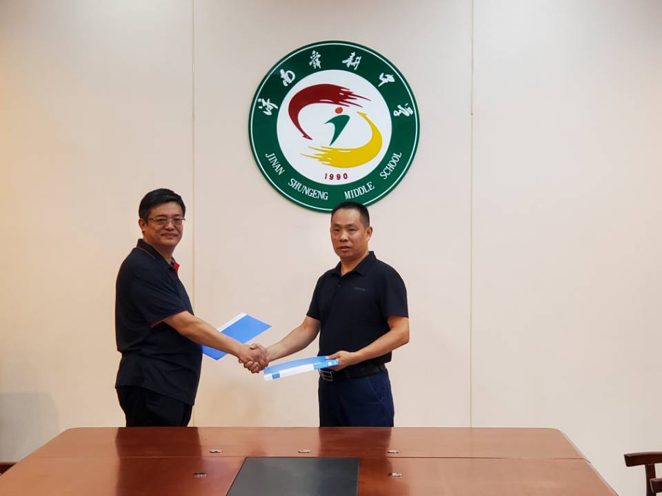 最后,学院副院长王纪辉与舜耕中学校长黎军代表双方签署了合作意向书。