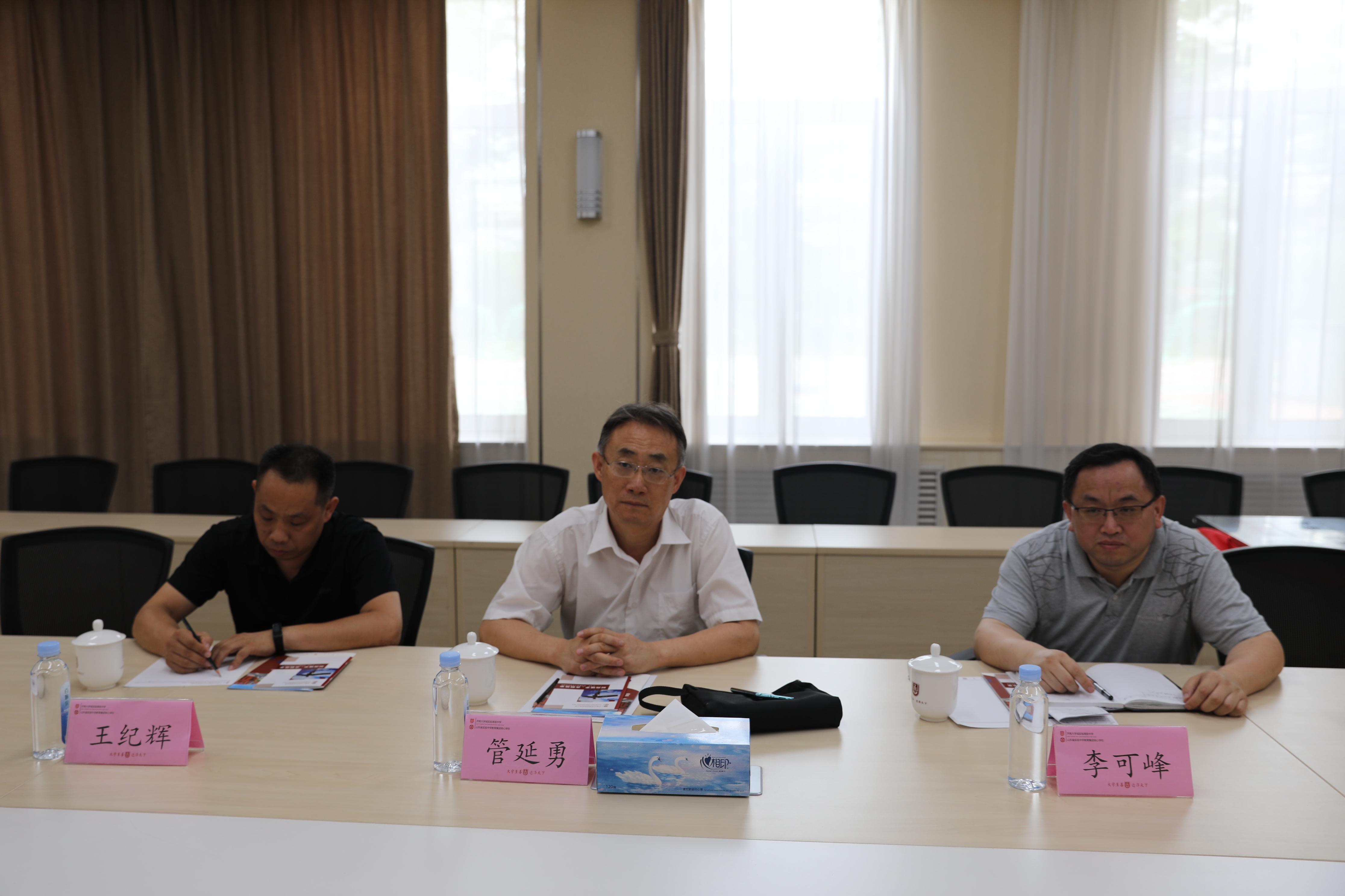 揭牌仪式后,管院长一行与山东省特级教师张继平、韩庆东和徐成周主任分别就教师的职业素养和职业情怀、新高考下数学教师专业成长等相关话题进行了交流探讨。