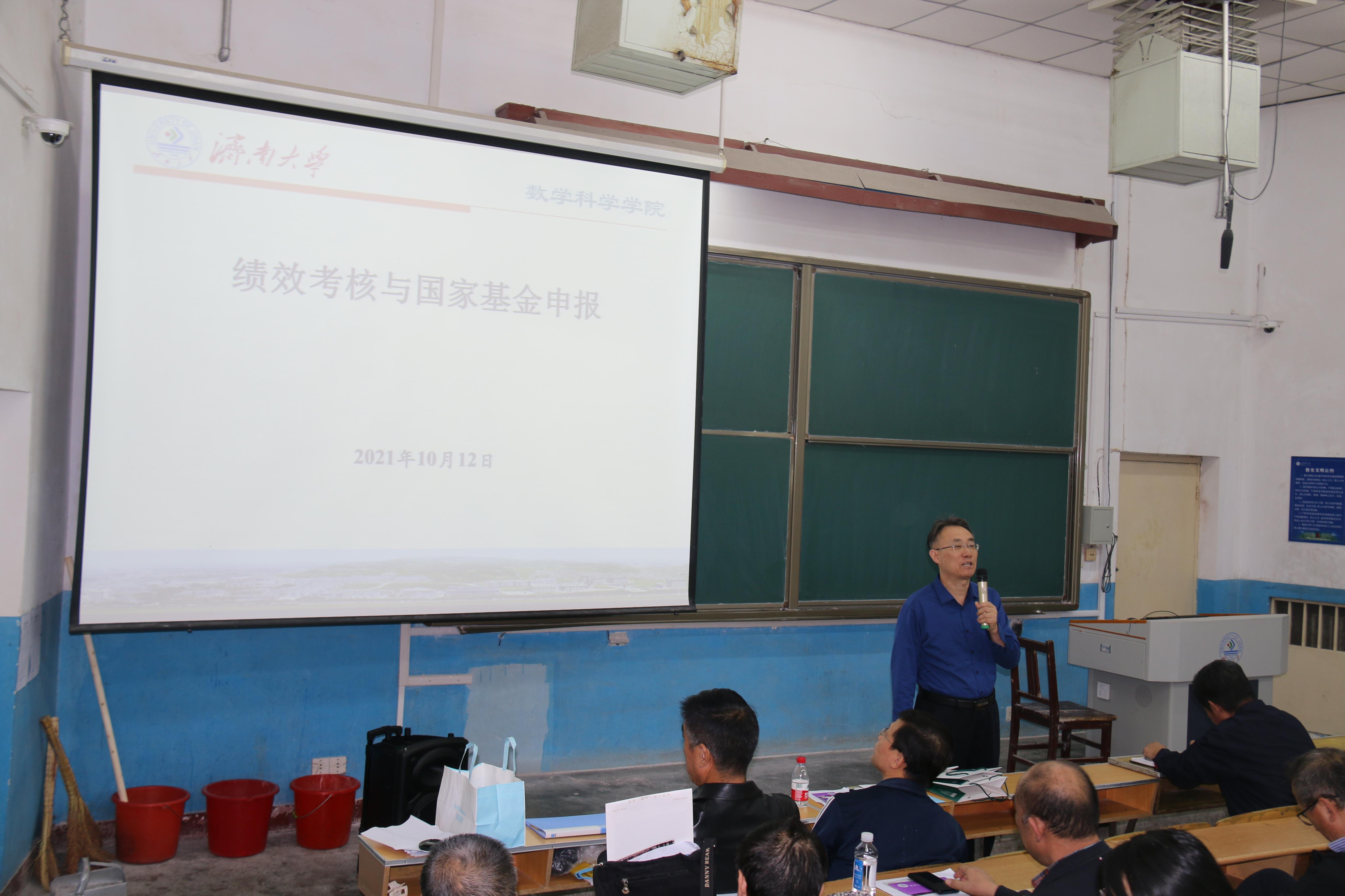 学院院长管延勇从考核原则、考核对象、考核周期与时间、考核内容、考核流程和方法、考核结果确定以及运用等方面全面解读了《买球官方网站党政群团教辅单位绩效考核办法(试行)》《买球官方网站中层干部年度考核办法》等文件,重点解读了学院2021年教学、科研、对外交流、科技创新、学生考研率等具体考核指标任务,并就如何保证完成年度工作任务提出了要求。随后,管院长梳理了“十三五”期间校院国家自然科学基金申报情况,总结表扬了学院在“十三五”基金立项的优异表现,全面介绍了“十四五”开局之年学校国家自然科学基金的申报以及立项情况,重点介绍了学院2022年国家自然科学基金申请的初步思路与想法。