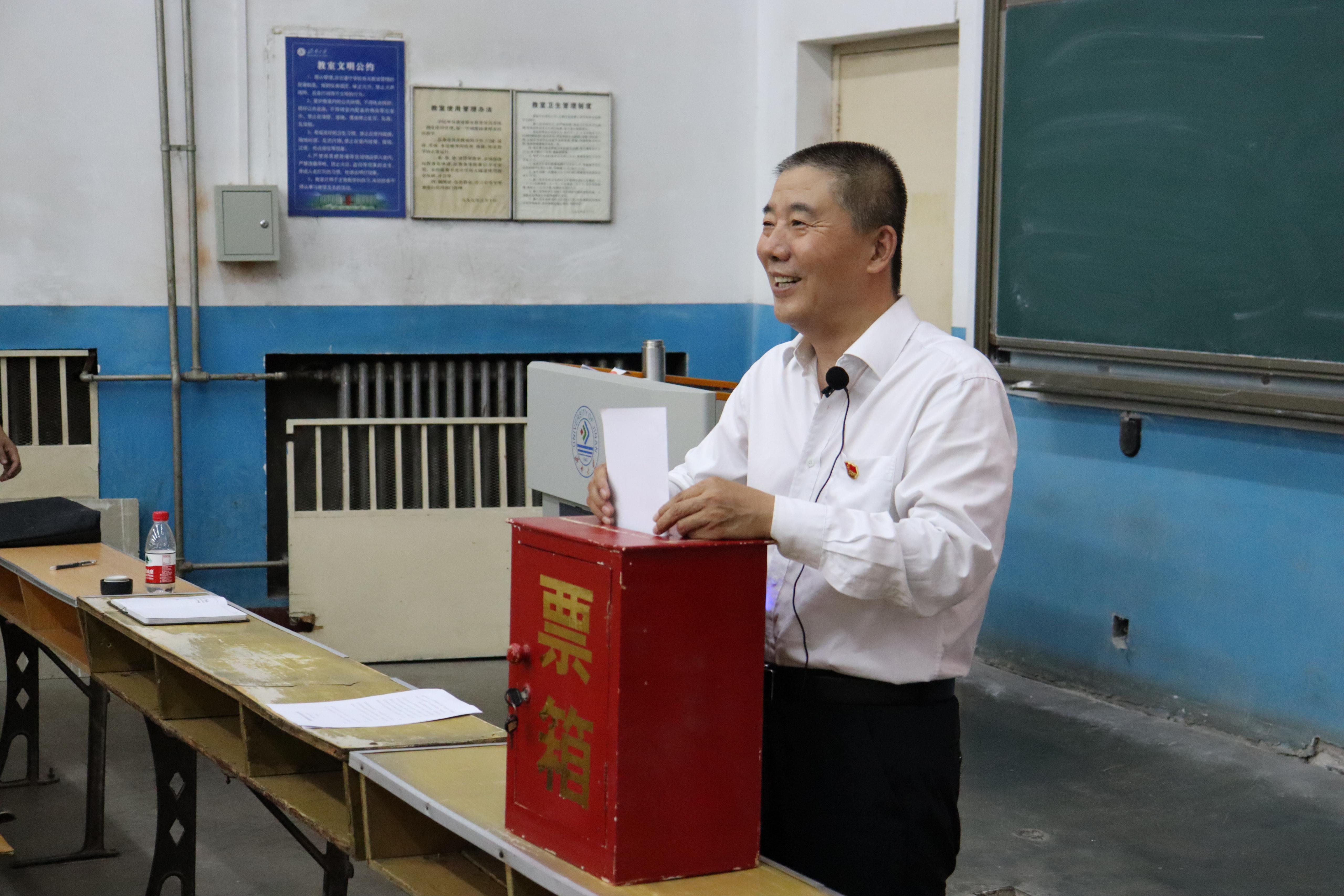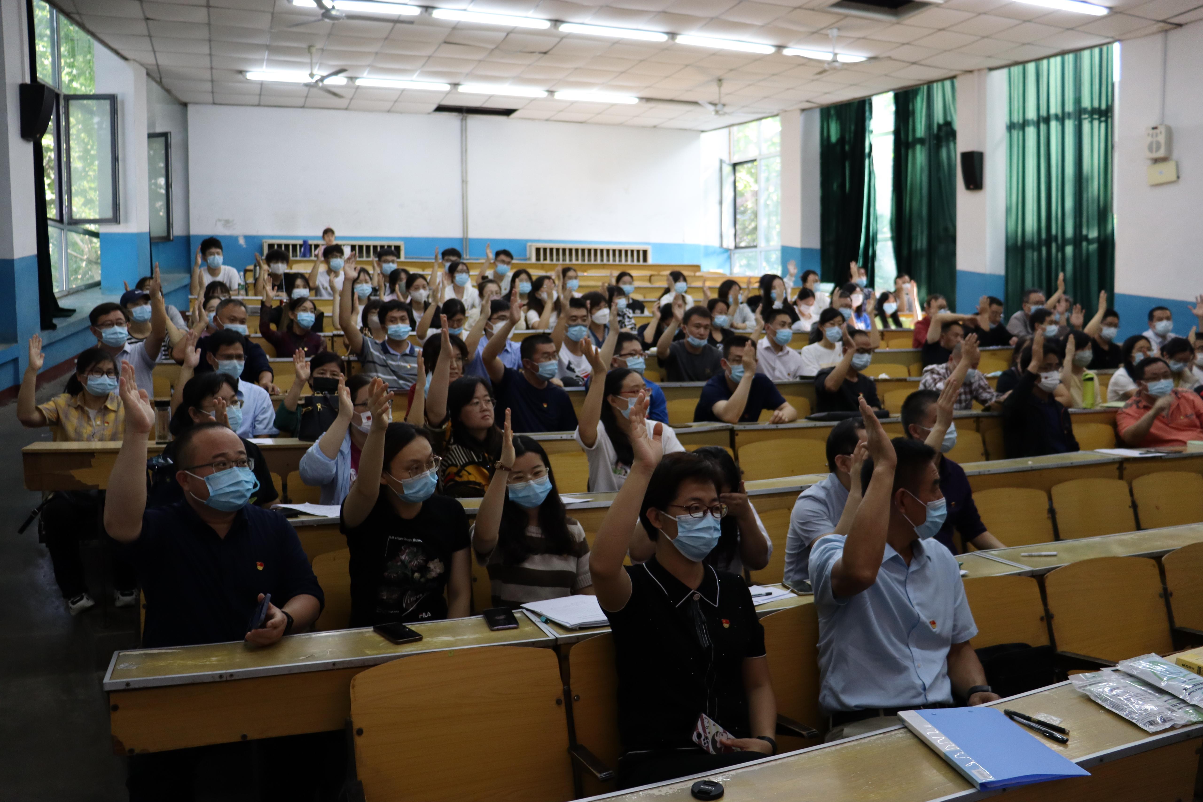 8月30日下午,买球官方网站党委在梅花馆合一教室召开换届大会,选出了新一届党委领导班子。大会由买球官方网站党委书记侯启海主持,全体师生党员参加。
