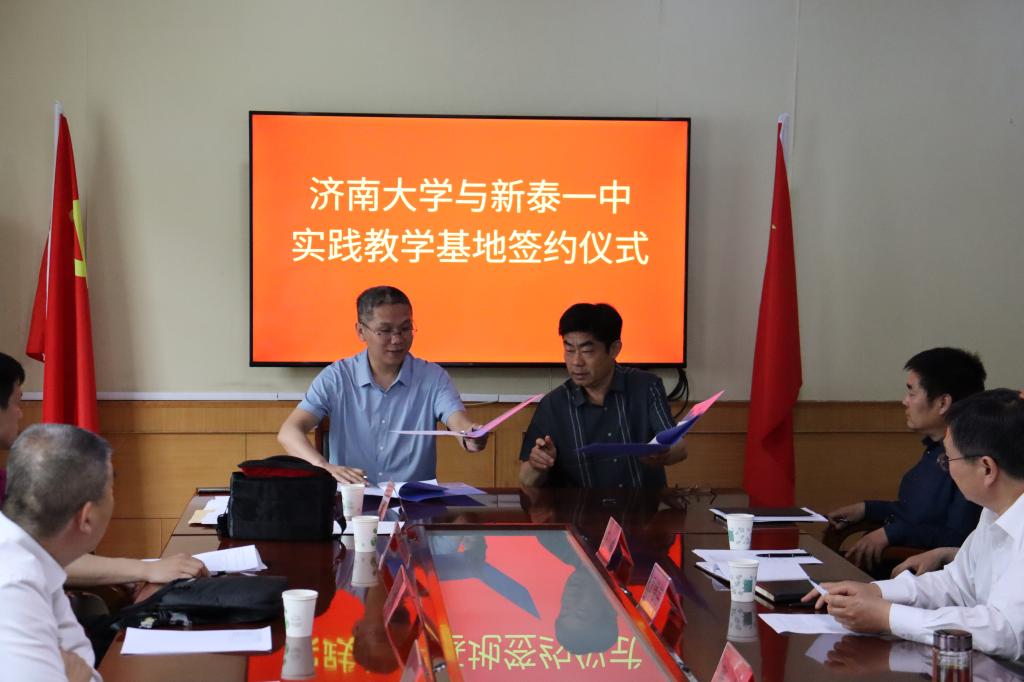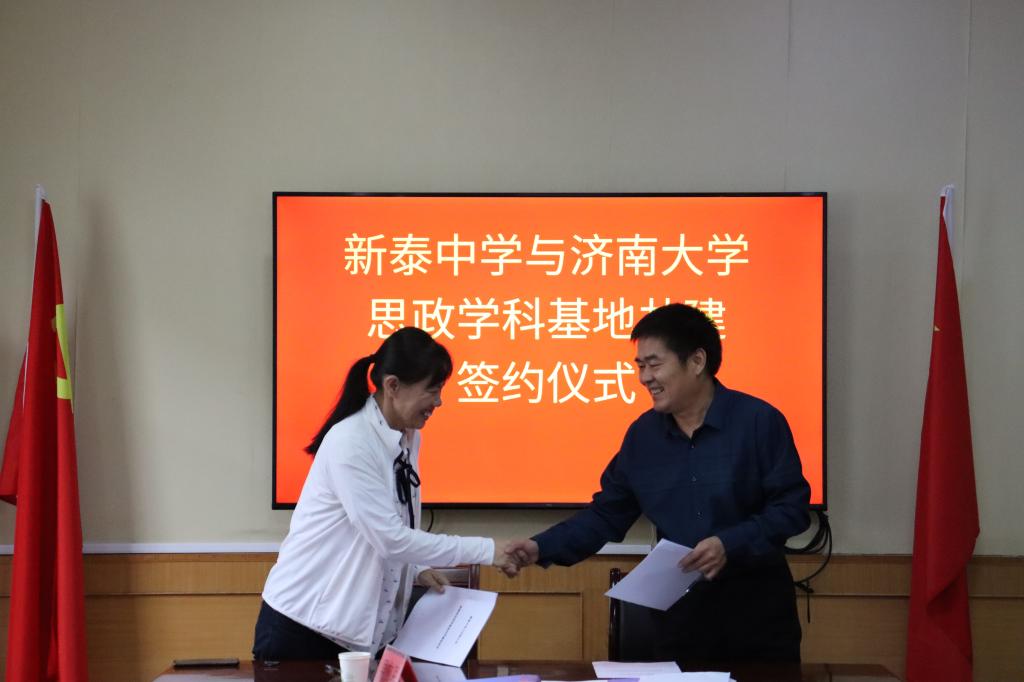 会上,买球官方网站与新泰市第一中学签订了实践教学基地、就业实习基地,与新泰中学签订了优秀生源地、数学学科、思政学科共建合作协议,并举行了授牌仪式。