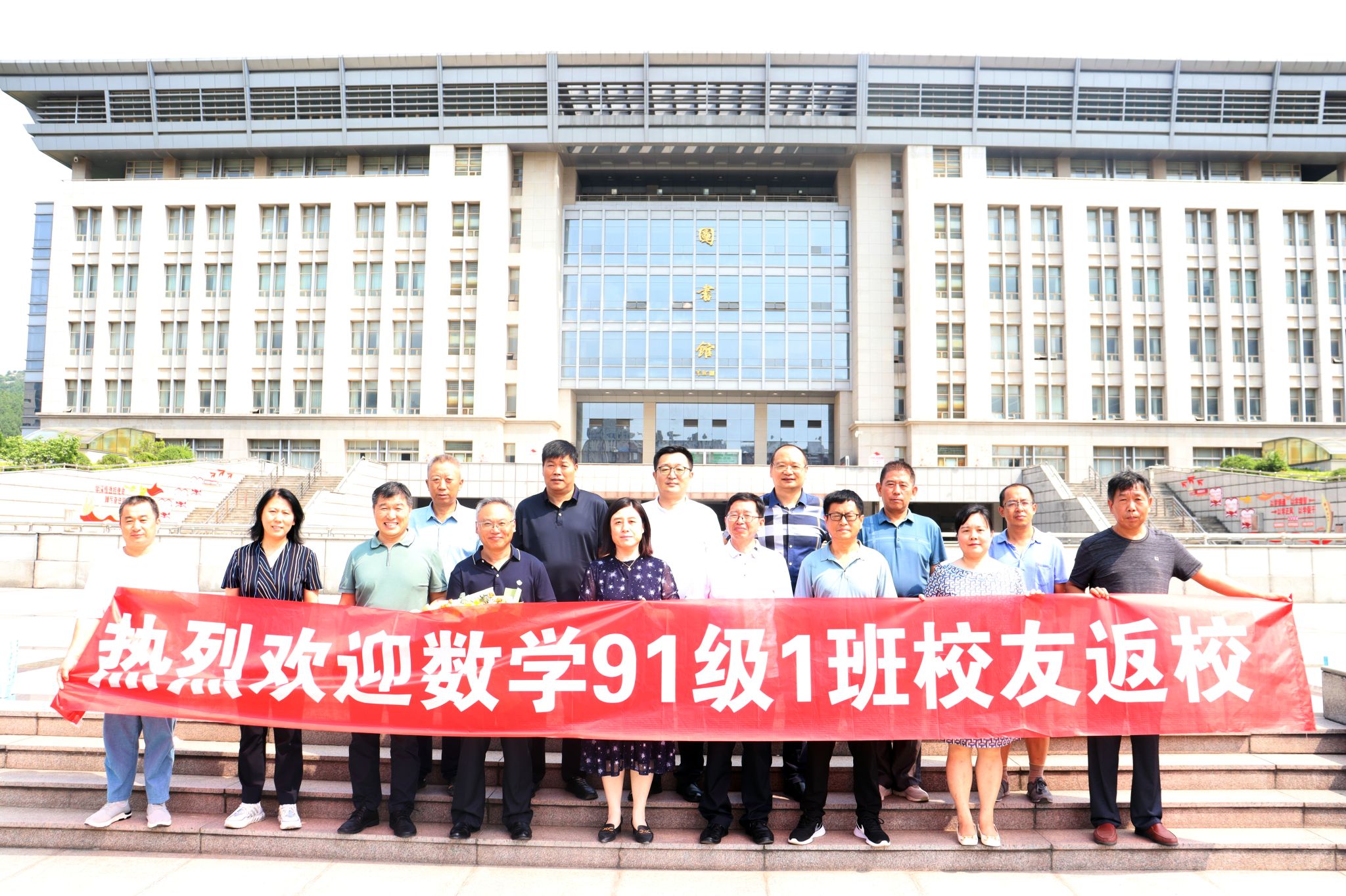 在买球官方网站建校75周年之际,8月5日,学院91级数学1班校友重返母校,再叙师生情。学校校友办副主任李仲涛、学院党委书记崔英静,党委副书记、副院长张沂红、91级数学1班班主任杨殿武、学办主任吴立军等参加本次活动。