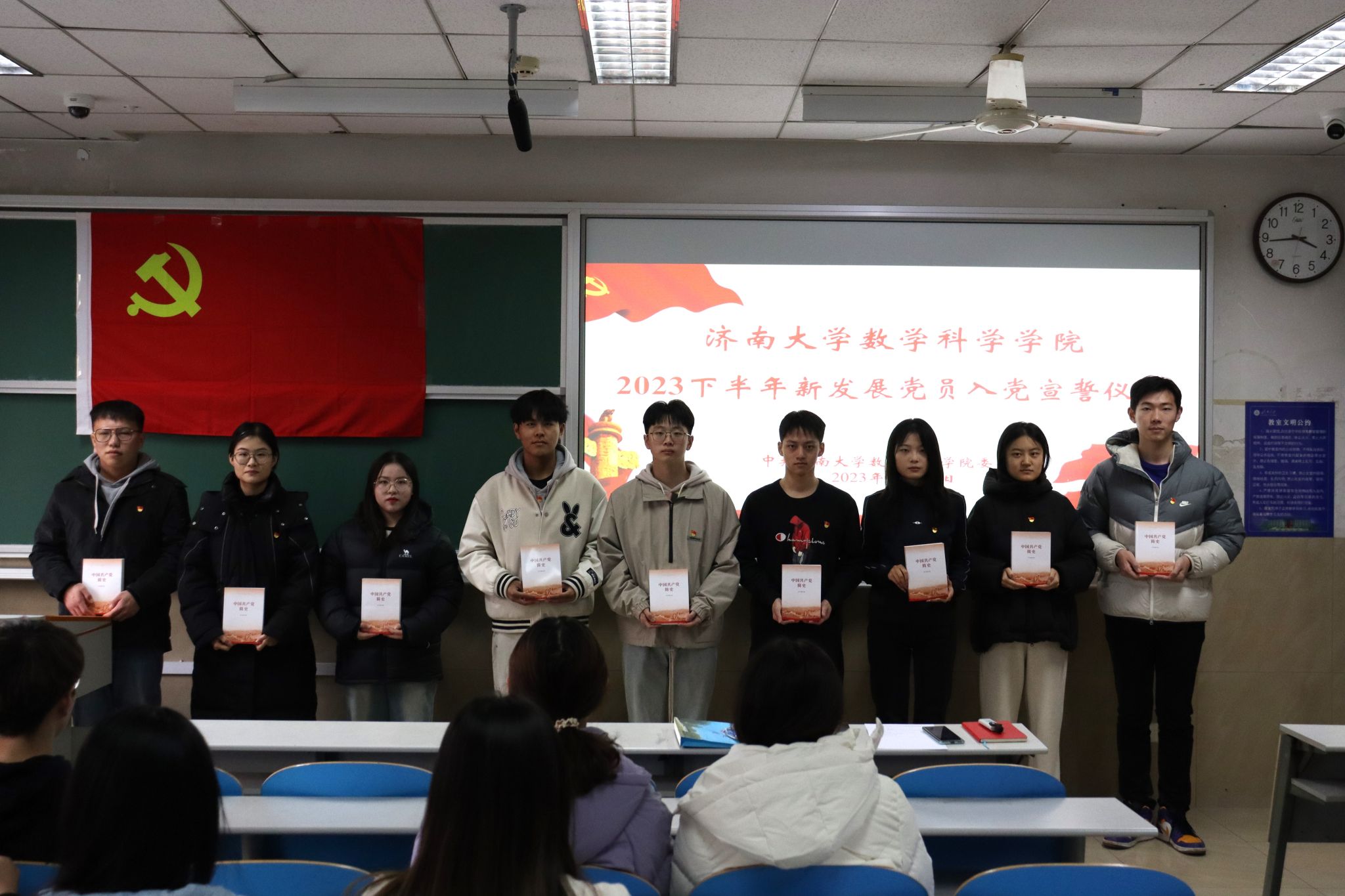 为深入学习贯彻习近平新时代中国特色社会主义思想,强化新发展党员党性修养,增强党组织的凝聚力、战斗力和影响力,近日,学院党委组织2023年下半年新发展党员进行入党宣誓。学院党委副书记张沂红出席仪式并讲话,学院全体学生党支部书记、副书记,以及2023年下半年新发展党员参加宣誓仪式。