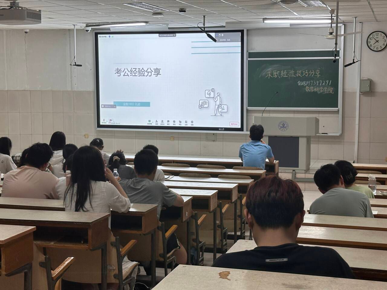 为普及国考省考知识,明确考试相关政策、要求和形式,帮助同学更具体、更清晰地认识相关考试知识,买球官方网站在二教顺利举办国考省考经验交流分享会,学院邀请了国考省考上岸的同学为大家分享经验,发挥朋辈引领作用,为考生们提供一个相互学习交流的平台。活动伊始,金数1902孔颖以其扎实的备考策略和严谨的学习态度介绍了如何制定合理的学习计划、高效利用备考资料以及在考前进行有效的冲刺,让大家深刻感受到了国考备考的严谨性与艰巨性。在心态调整方面,她也特别强调了保持良好心态的重要性,指出我们应该保持积极、乐观的心态,不断调整自己的心态,以应对可能出现的困难和挫折。紧接着,宋振永则着重分享了他是如何平衡工作与学习的。他表示国考省考并不如想象中如此困难,并着重强调了我们应重视报名的开始阶段和考试时间节点。国考省考不仅是一场知识的较量,更是一场心态和毅力的考验。备考过程中,我们不仅需要掌握扎实的基础知识,还需要学会如何调整心态,在压力下保持冷静和自信。通过此次分享会,同学们不仅收获了很多实用的备考技巧,更感受到了备考路上的温暖与力量。相信在不久的将来,会有更多的同学在国考省考的道路上取得优异的成绩,为国家建设添砖加瓦!