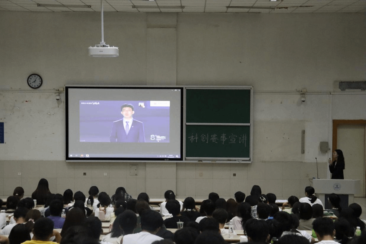 数院新生欢聚一堂,在徐靖瑄的带领下共同深入了解科技创新赛事。徐靖瑄首先向大家介绍了“国创”、“省创”与“校创”相关的计划来鼓励学生积极参与,提升大学生的创新精神、创业意识和创新创业能力。其次分别向大家介绍了“电工杯”、“高教社杯”、“中国国际大学生创新大赛”、“大挑”、“小挑”、“全国大学生数学竞赛工行杯”、“蓝桥杯”、山东省师范类高校学生从业技能大赛等赛事,细致讲解了不同赛事的参赛时间、报名网站、参赛条件、论文要求等,帮助同学们更好地了解各项赛事的具体赛程,形成对科创竞赛体系的整体把握,并倡议大家积极参与科创赛事,以赛促学,搭建知识理论和科学实践相辅相成的桥梁。紧接着映入眼帘的是一段视频,视频中专家的指导以及幽默的形象紧紧吸引大家的关注,他们以生动的语言不断向学生们普及科创知识,切实激发了新生们参与科创赛事的兴趣和热情。
