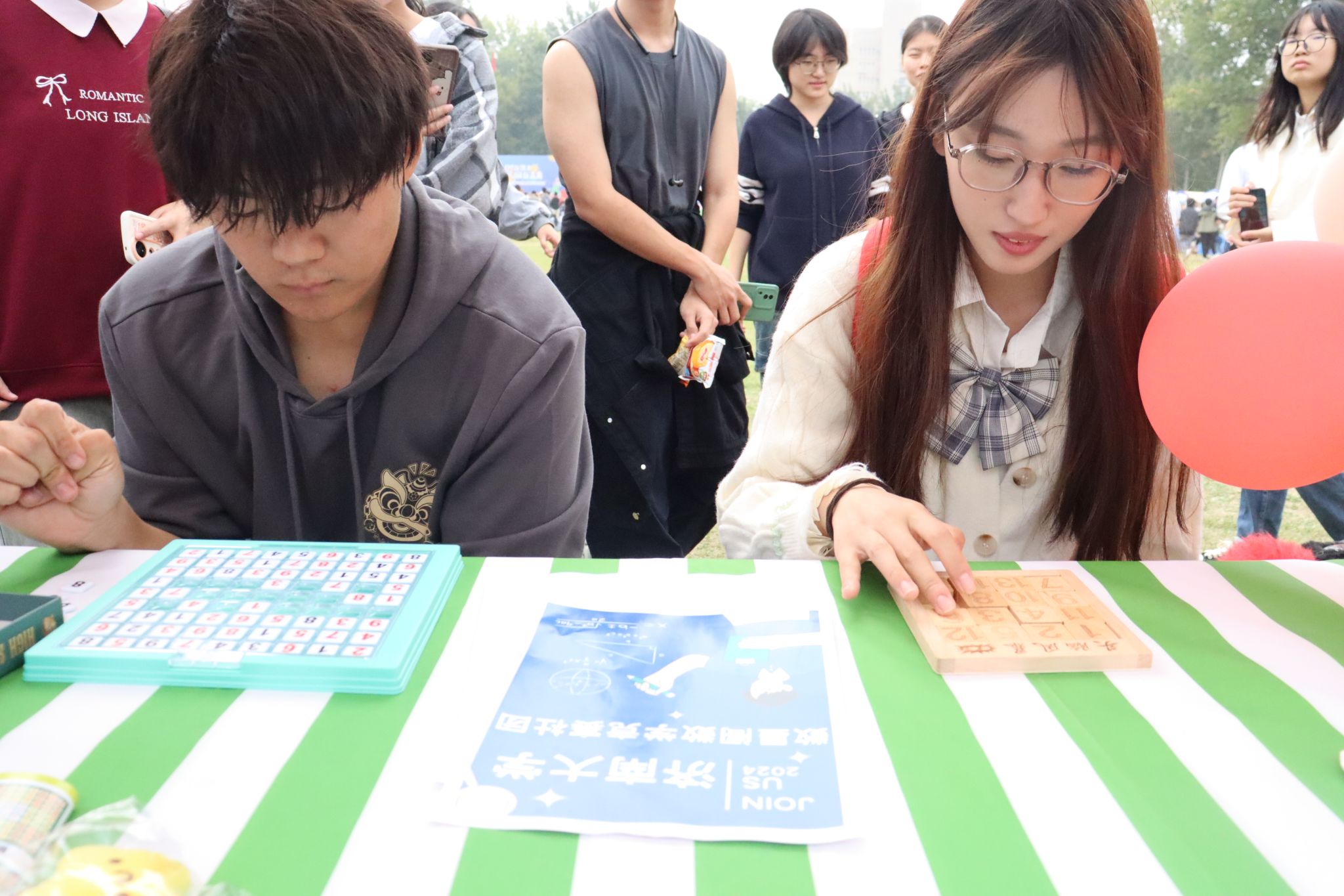 数学不只有枯燥的定理和公式,更有无限乐趣、无限可能。在活动现场,买球官方网站数星阁数学竞赛协会就以其别具一格的魅力吸引着众多观众欣然前往。数独、华容道等各类益智游戏,吸引了不同学院各个年级的同学们来此进行思维碰撞和脑力挑战。在游戏过程中,参与者沉着冷静,运筹帷幄,全神贯注于眼前的挑战,通过游戏体味数学知识,在探索中感受数学文化。此外,竞赛题目令人眼前一亮,以其多样的风格吸引着参与者积极投身其中。同时,数学建模也凭借其蕴含的团结精神与数学应用魅力,吸引了众多学生的关注。买球官方网站智慧树数学建模协会通过四面翻盘、俄罗斯方块拼图等游戏,让参与者在实践中体悟数学的迷人魅力,在竞争中磨砺自身思维能力,尽享数学之趣。
