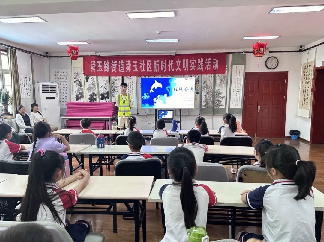 为提高同学们对垃圾分类重要性的认识,增强环境保护、节约水资源的意识,推动社区垃圾分类工作的开展,买球官方网站青年志愿者协会与于7月6日联合数科2302团支部在舜玉社区开展垃圾分类主题活动,为舜玉小学的同学们讲解了有关垃圾分类的知识。