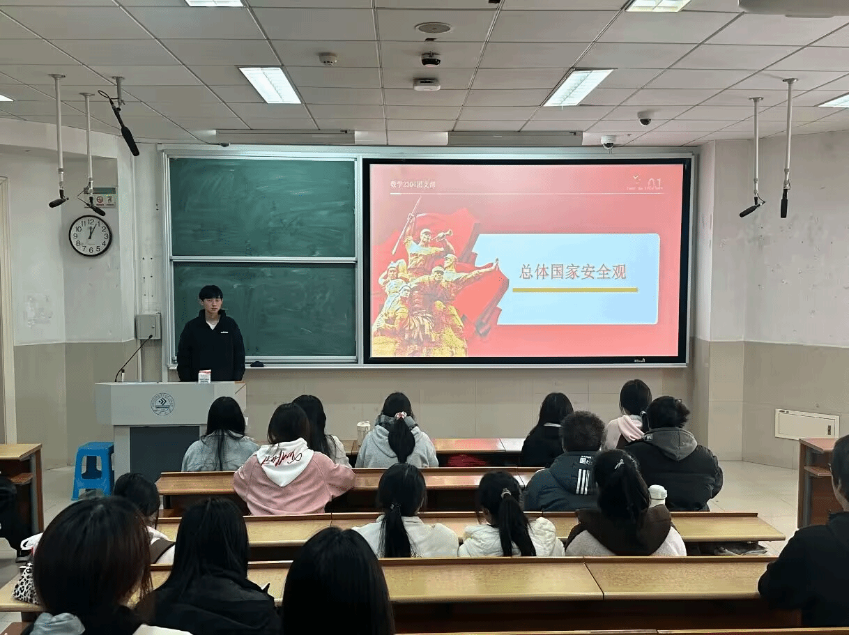 在数学2304班的教室里,团员代表们通过演讲,从不同角度阐述国家总体安全观。一些代表结合国际热点事件,分析其对我国安全形势的影响;另一些则聚焦于日常生活,探讨大学生在维护国家安全中可以采取的行动,如抵制不良信息传播、保护个人信息安全等。这些演讲内容引发了同学们的广泛共鸣。