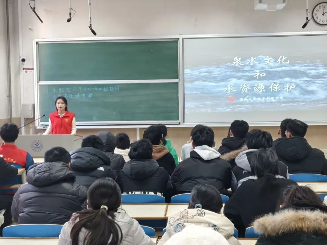 “水清则鱼跃,保护则源长。”为增进同学们对济南泉水文化的了解,让保护泉水的理念深入人心,买球官方网站学生会青年志愿者协会联合数学2404团支部于11月26日在第一教学楼106教室开展青社堂宣讲活动。
