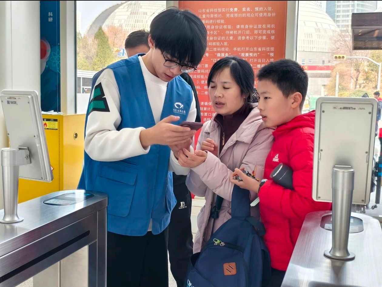 在活动开始之前,志愿者们在山东省科技馆工作人员的引导下,深入了解了场馆的各个区域和展品分布。服务期间,志愿者们身着统一服装,有序驻守在科技馆的不同角落。在互动体验区,志愿者们引导访客安全、正确地操作科技展品,让大家尽情感受科技的魅力;在科普讲座区域,他们又协助维持现场秩序,为听众发放资料,并解答听众的疑惑。此外,志愿者们还帮忙更新科技馆内的科普展示信息,协助工作人员布置新的展览区域,让科技馆始终保持新鲜感与吸引力。此次经历让志愿者们收获了满满的成就感,提升了沟通能力和团队协作能力,更让他们深刻领悟到志愿服务对传播科学知识的重要意义。