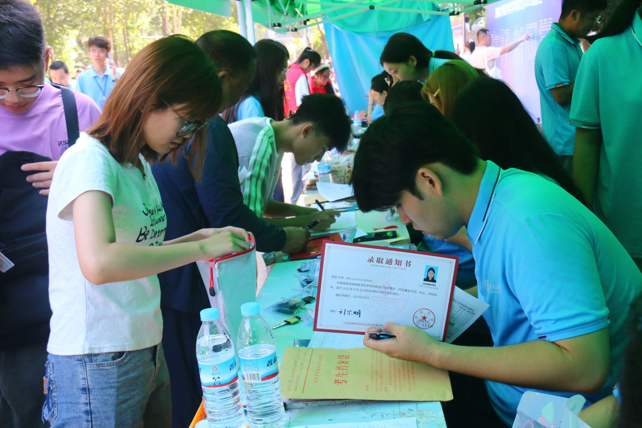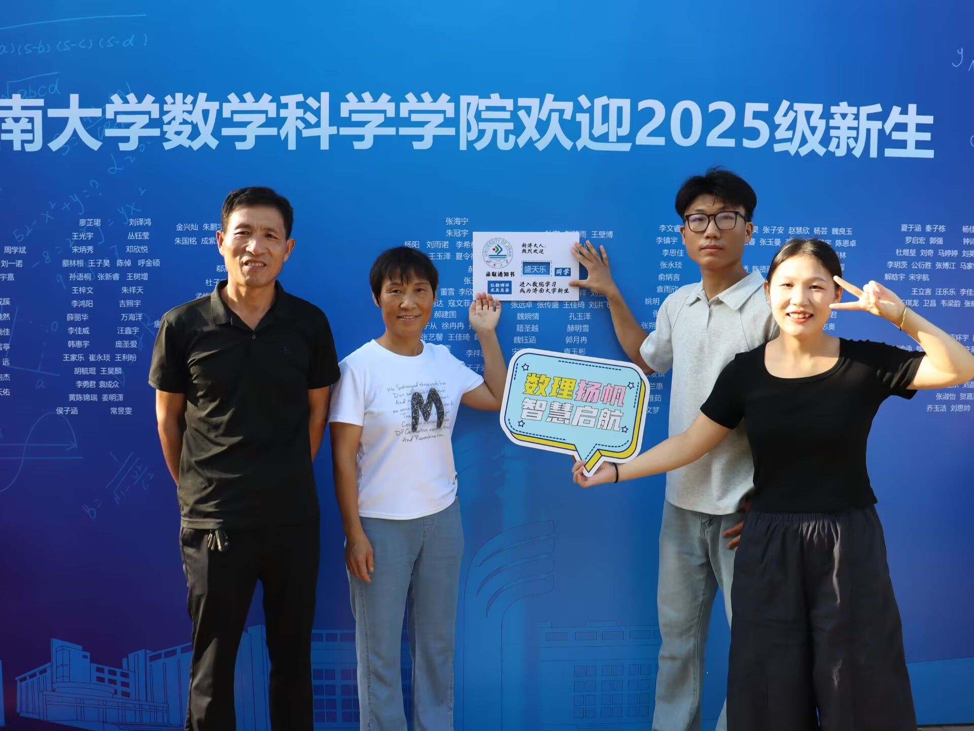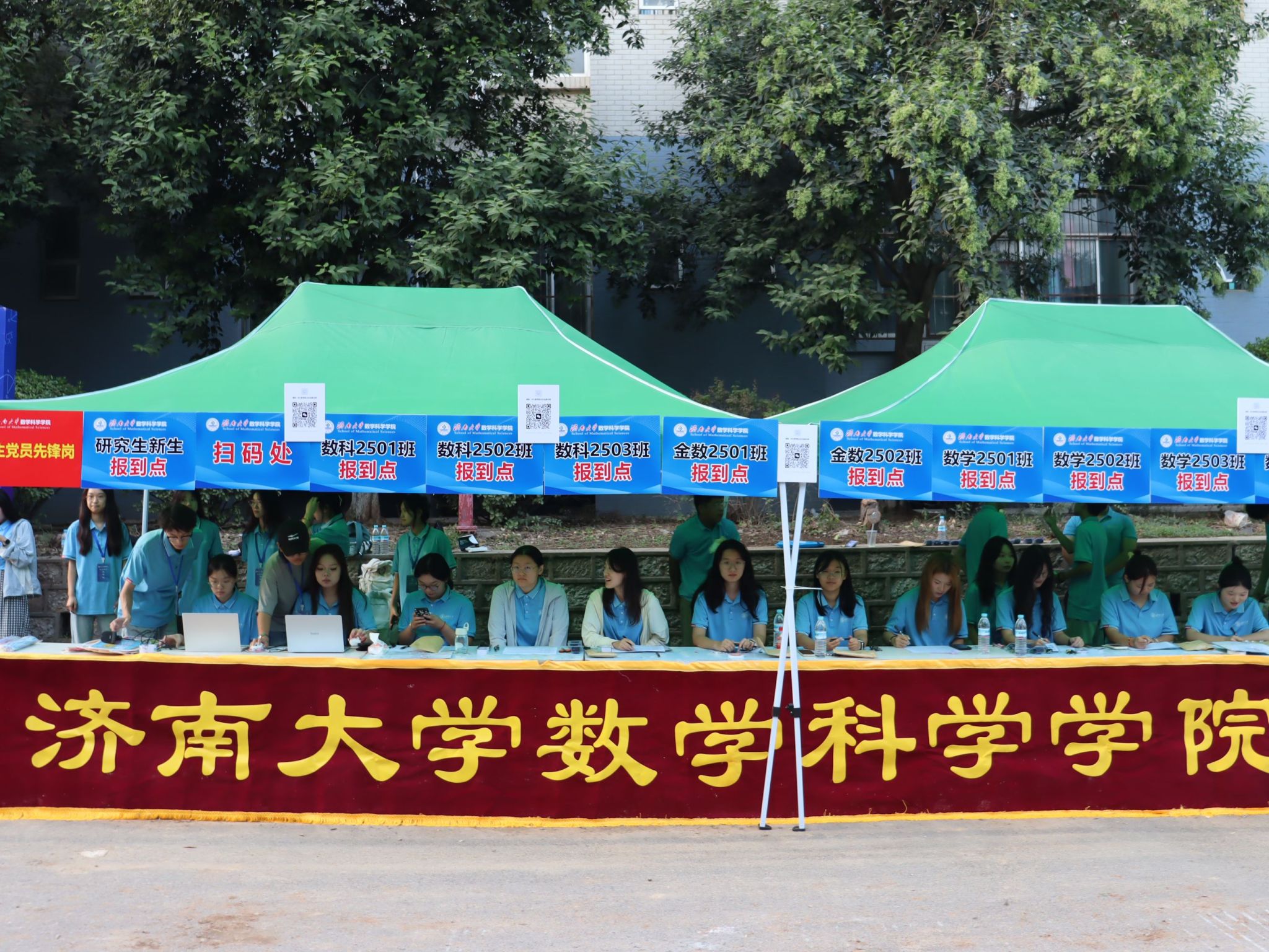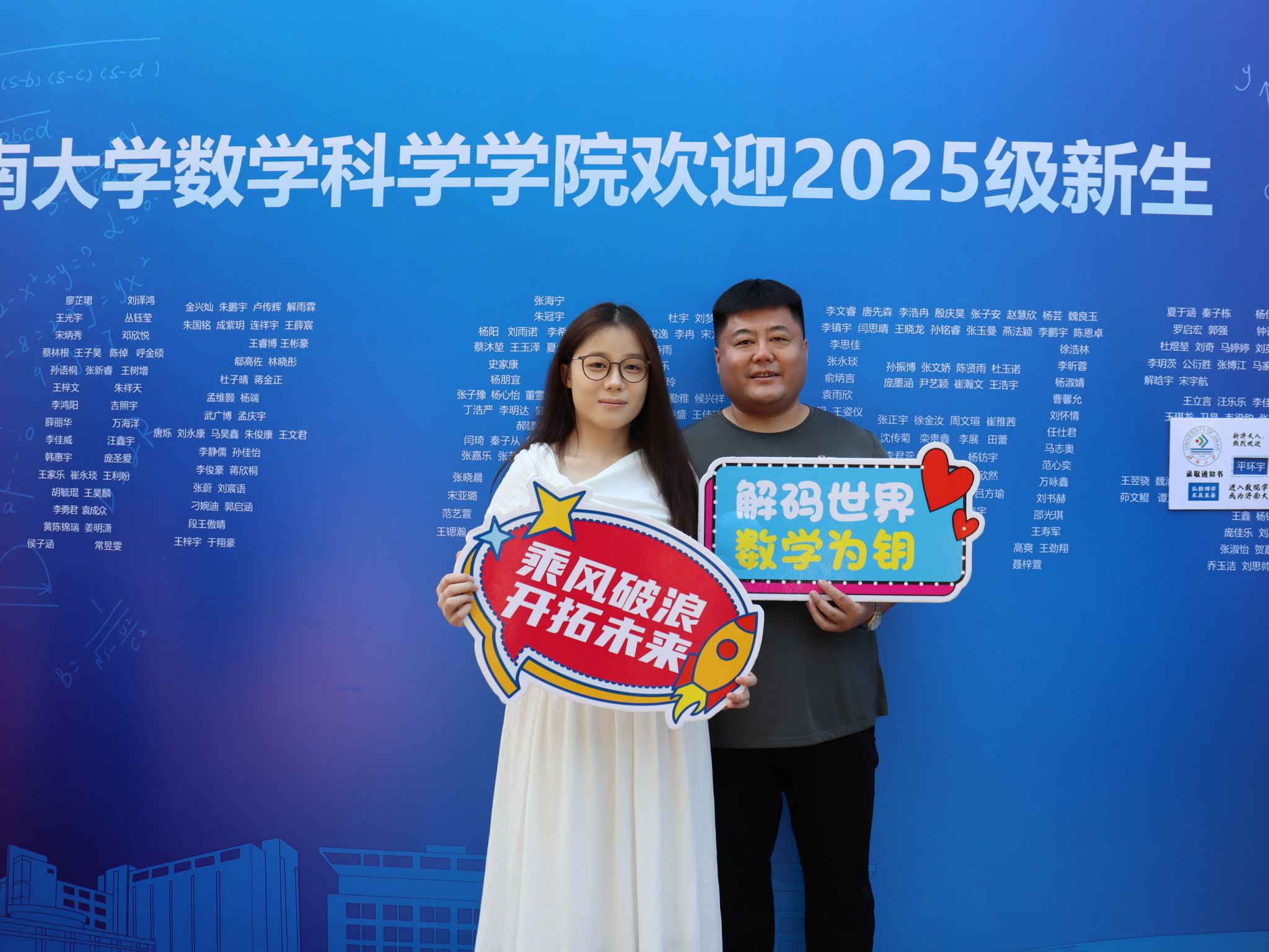 此次迎新活动,学院特别融入数学文化特色元素。在报到入口处,以数学公式、数学家名言设计的文化展板吸引众多新生驻足,在了解数学历史、感悟数学魅力的同时,激发新生对专业学习的热情。在互动区,专属姓名墙与创意标签别出心裁,留下初入校园的专属印记,并与姓名墙合影,定格与买球官方网站的初遇瞬间。现场气氛热烈,欢笑声、讨论声此起彼伏。