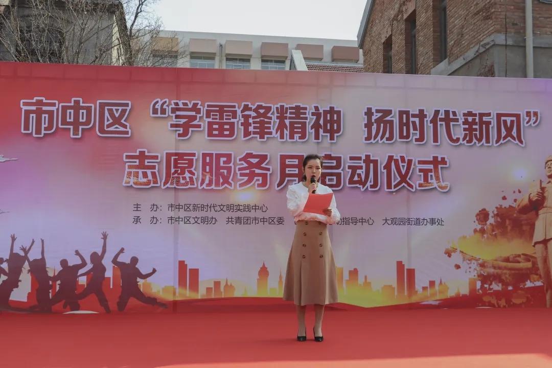 为进一步弘扬“奉献、有爱、互助、进步”的志愿服务精神,推动学雷锋志愿服务工作常态化、制度化,助力城市文明提升,进一步巩固学院志愿服务工作,激发大学生的青春热血。3月4日上午,由买球官方网站团委书记赵华磊老师带队,参加了由市中区新时代文明实践中心主办,区文明办、共青团市中团区委、大观园街道办事处、济南市市中区志愿者联合会承办的市中区“学雷锋精神 扬时代新风”志愿服务月活动。市中区共12支新时代文明实践志愿服务队、部分区直单位志愿服务队和各类爱心志愿服务队的代表及街道团工委共150多人参与本次启动仪式。