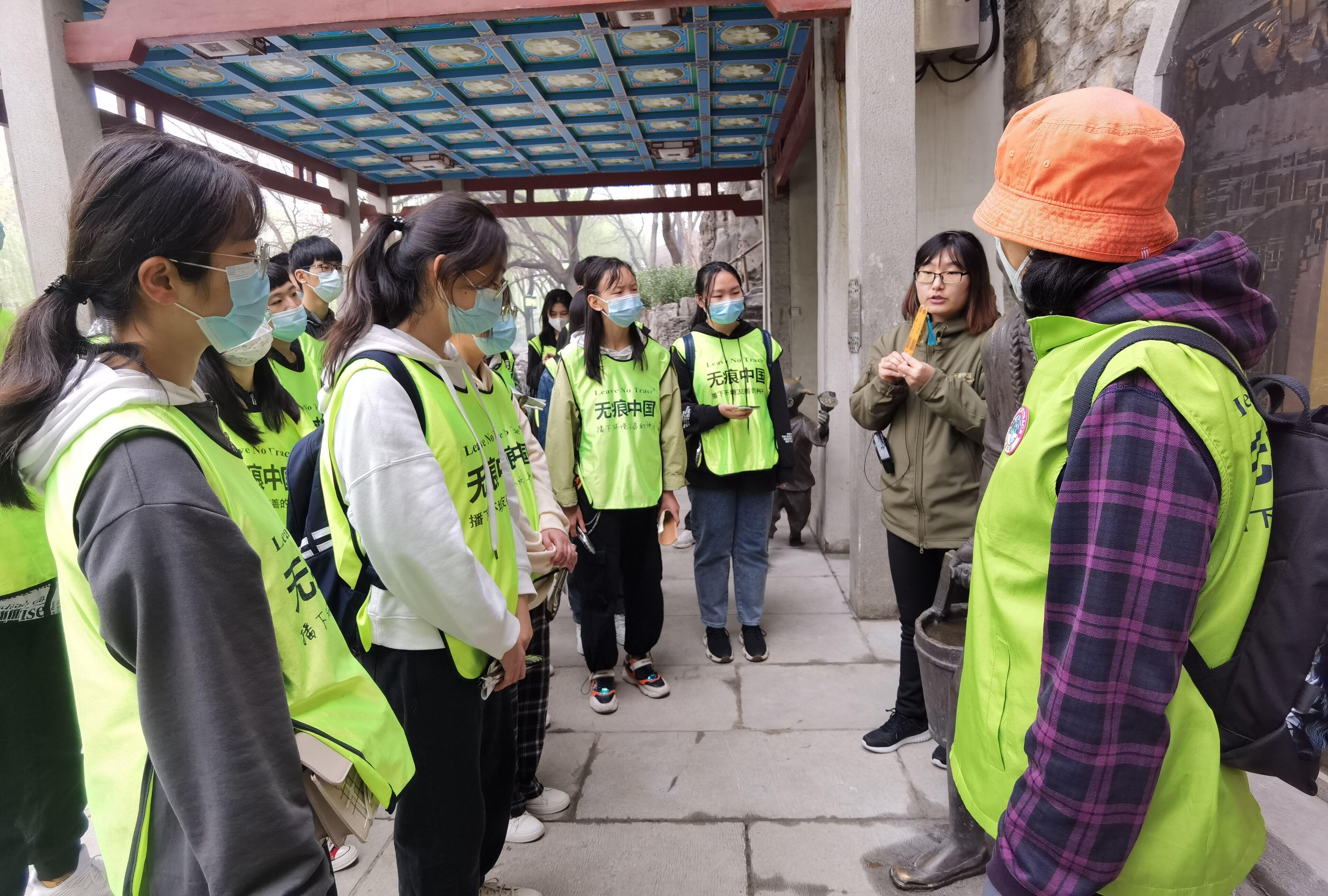 3月27日上午,同学们一早就抵达了黑虎泉活动现场。活动伊始,负责人分发了带有“无痕中国”标识的马甲和专用的垃圾夹。同学们在讲师的讲解过程中了解到了“泉城”这个称号的由来和济南四大泉群的形成;了解到一百年前济南人是通过泉水井和叫卖来取水用水的。最后,同学们参观了一个顶部为正方形有开口的亭子——金虎亭,听讲师介绍了它的四大特点,让同学们对这里有了更多的了解。经过讲师一上午的讲解,同学们收获颇丰,深刻体会到了黑虎泉所蕴含的文化内涵,也为未来的志愿活动打下了坚实的基础。同学们一边听讲师讲解,一边捡拾垃圾,成为黑虎泉一道亮丽的风景线,获得了游客们的称赞。