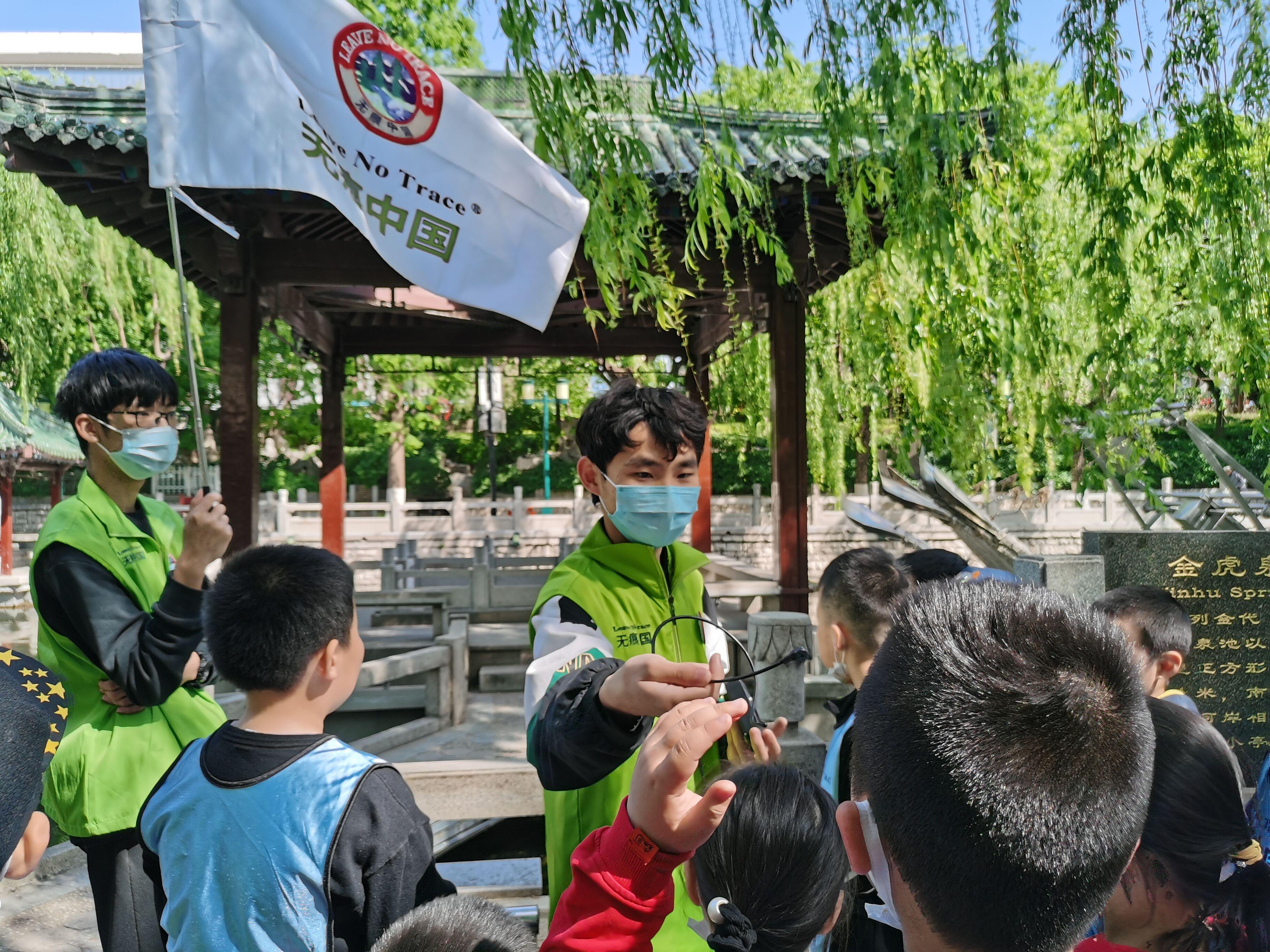 为增强大学生社会实践能力,宣传保护环境,从现在做起,从小事做起的环保理念,买球官方网站青年志愿者协会与趵突泉小学2019级2班的小朋友们于4月17日9:00在济南市黑虎泉景区组织了“无痕”环境教育活动。在此次活动中,志愿者们摇身一变,成为了为小朋友耐心讲解的小讲师。