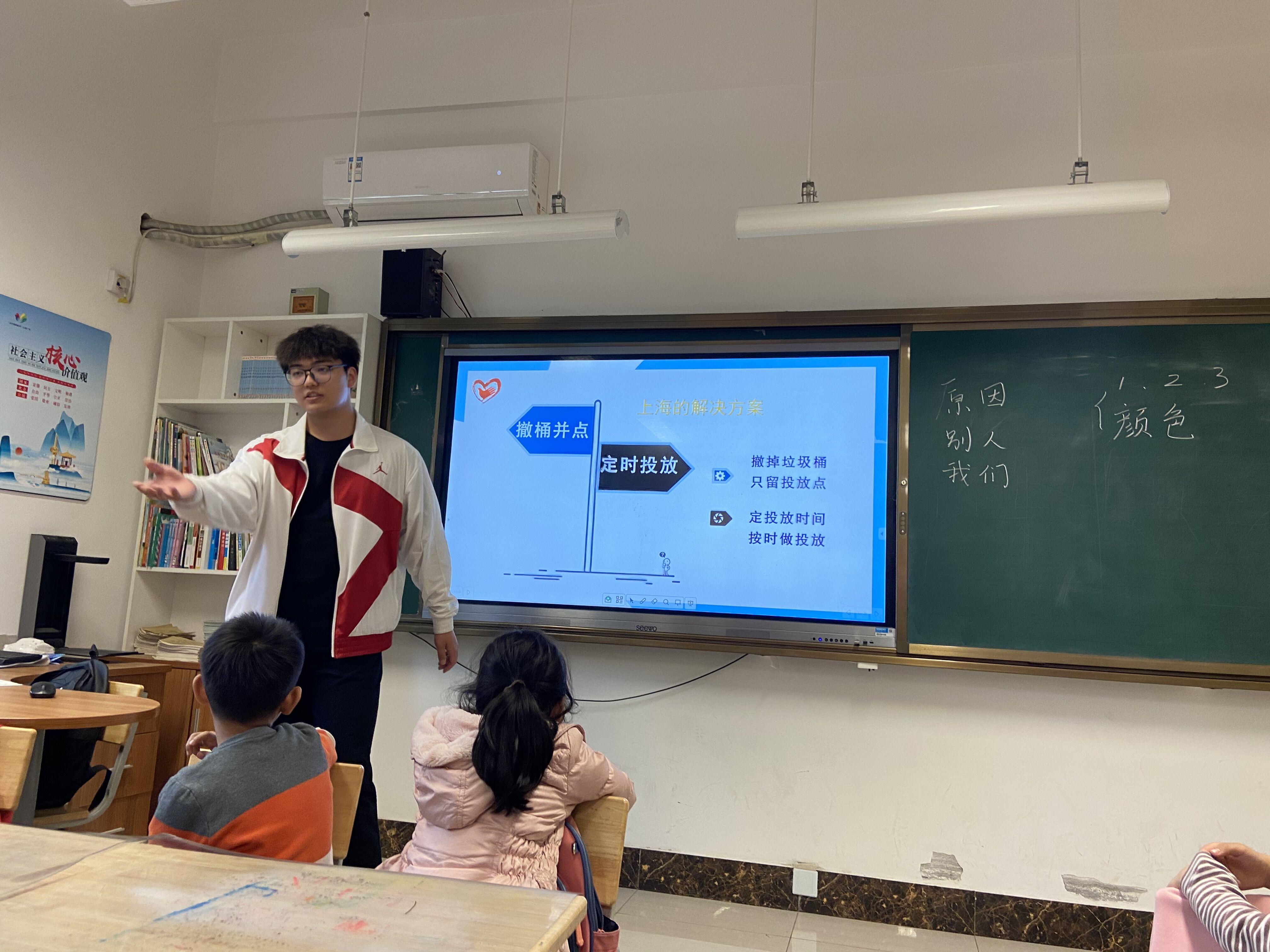 在团委书记赵华磊老师的带领下,买球官方网站青年志愿者走进文景小学,向小学生讲解有关垃圾分类的知识。讲师陆佳骏主要从垃圾分类的原因、别人如何做垃圾分类以及我们如何做垃圾分类三个方面进行垃圾分类相关知识的讲解。在讲解的过程中,志愿者们进行了一系列垃圾分类的小游戏,让同学们亲身体验如何进行垃圾分类,通过游戏的方式教给了同学们更多有关垃圾分类的知识。活动最后以垃圾投放小游戏结束,让同学们自己分类收拾好桌面的垃圾卡片,进一步增强同学们的垃圾分类意识,加深他们对垃圾分类的理解。最后赵华磊老师代表买球官方网站向文景小学参与活动的班级赠送了一批垃圾分类环保书籍,鼓励学生更多的去了解垃圾分类知识,积极进行垃圾分类。