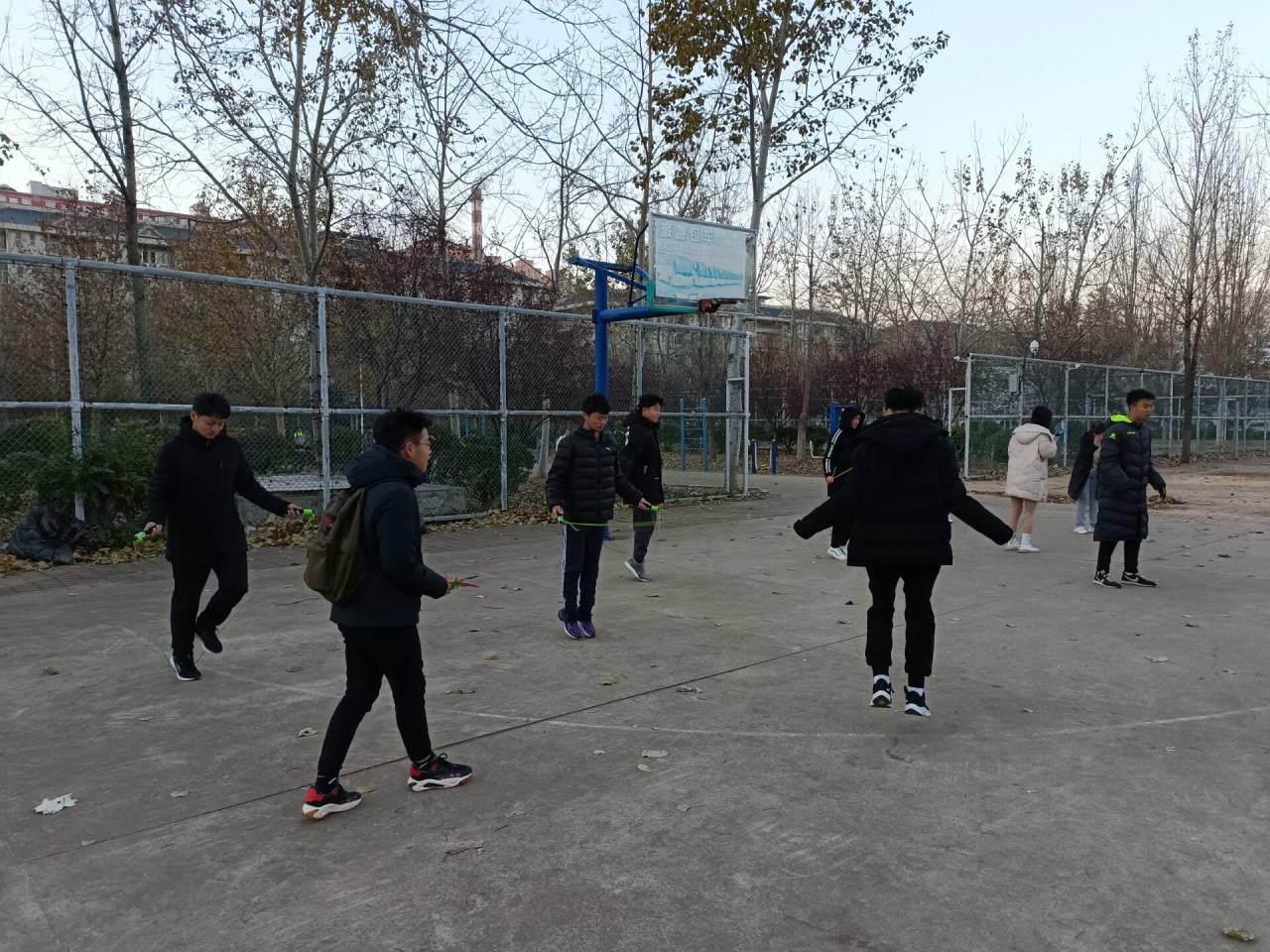 寒冷的冬季并没有打断同学们的热情,选手们个个精神振奋,不甘落后。在踢毽子的活动中,同学们在切磋着踢毽子,毽子在同学们的脚尖翻出各种各样的弧度,毽子忽上忽下,时而向左,时而向右,不停地飞舞。在跳绳活动中,跳绳甩动的声音传遍整个场地,只听哨声一响,同学们争先恐后地挥动双臂,有节奏地开始了跳绳,他们使出浑身解数,争分夺秒,让自己的速度争取达到最快,参加活动的同学呈现出动作连贯、速度快的特点。五人一组的跳绳活动紧张而活跃,同学们都在共同努力,各显身手,现场欢声笑语不断。