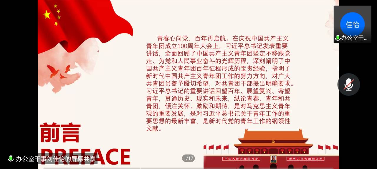 为深入学习习近平总书记在庆祝中国共产主义青年团成立100周年大会上的重要讲话,鼓励广大青年坚定理想,引导广大青年增强责任意识,买球官方网站于5月14日晚举办“牢记领袖嘱托,勇担青春使命”主题团日活动。