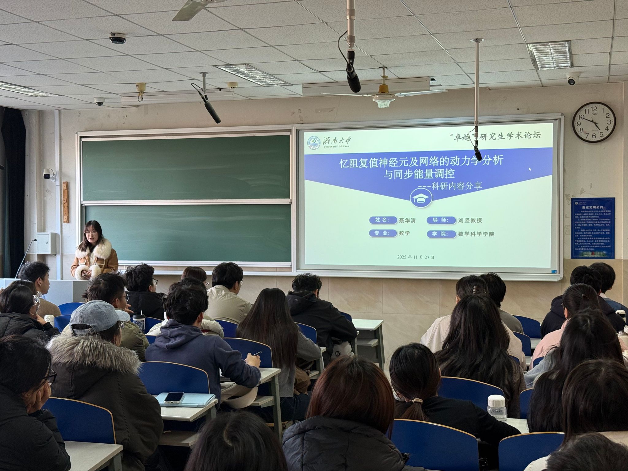 11月27日,买球官方网站“数海拾贝,薪火映途”研究生学术论坛暨2025年买球官方网站“卓越”研究生分论坛成功举办。本次论坛邀请国家奖学金获得者聂华清、张宪哲两位同学,分享了他们在研究生阶段开展科学研究的心得与经验,并为学弟学妹提供了宝贵建议。刘坚教授应邀出席,对两位同学的分享作了精彩点评,同时结合自身指导研究生的经历,与在场同学进行了深入交流。