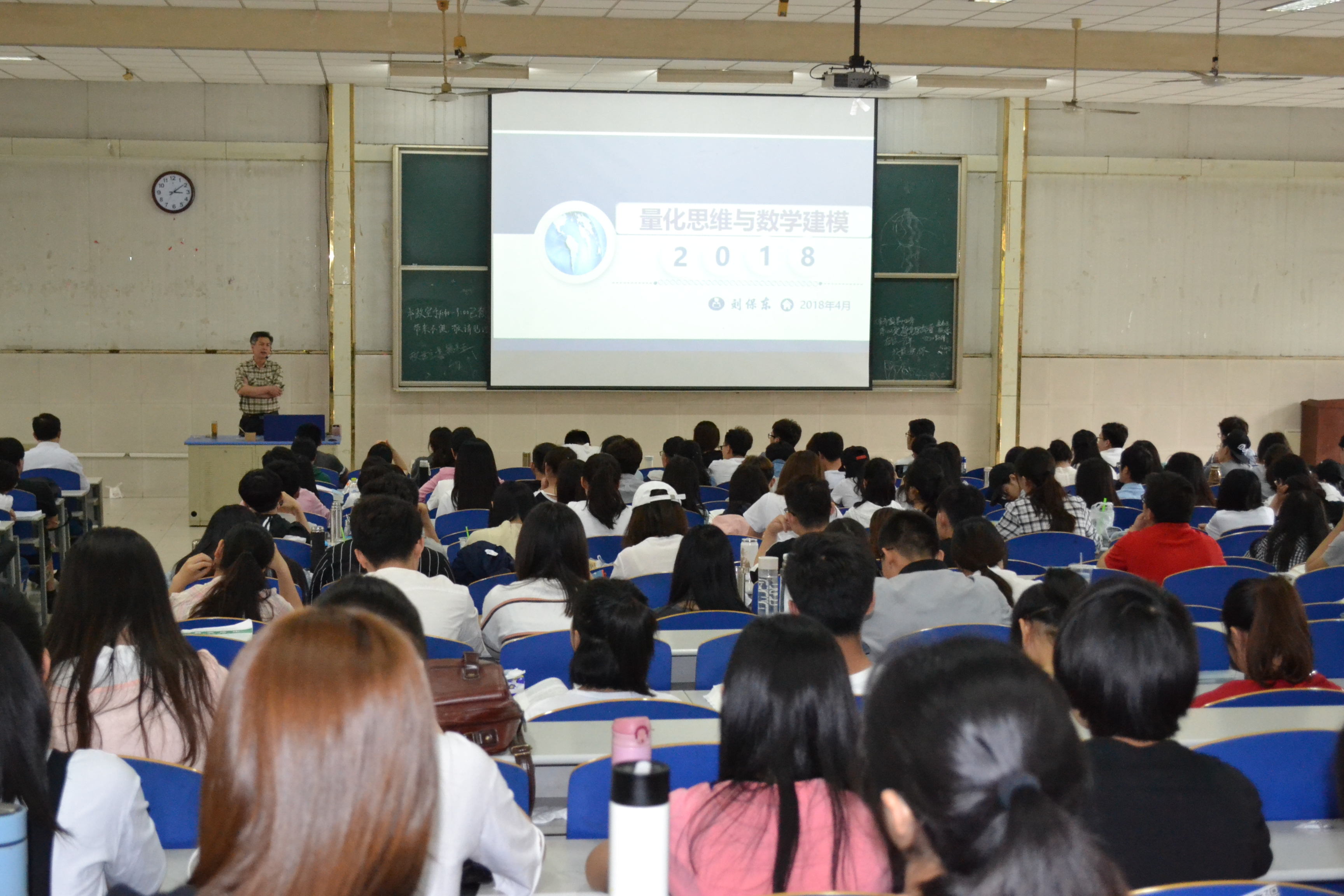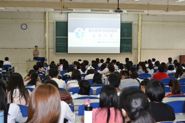 2018年5月20日,应买球官方网站邀请,山东大学软件学院刘保东教授来我校作了题为“量化思维与数学建模”的学术报告。来自我校各学院的四百多名学生和买球官方网站部分老师参加了报告会。本次报告会由数学建模指导中心主任许振宇副教授主持。