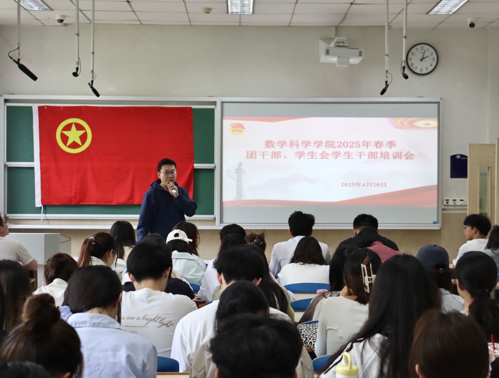培训会上,李宁对团干部和学生会干部提出明确要求。他强调,团干部和学生会干部要充分发挥"双带头"作用,既要做好基层组织建设,又要服务好广大同学。对此,李宁从四个方面提出具体要求:在思想引领方面,要求全体干部坚定理想信念,严守组织纪律,充分发挥模范带头作用;在日常工作中,强调要注重工作留痕,确保信息传达及时准确;在能力建设上,要求不断提升业务水平,以认真负责的态度完成各项任务;在创新实践方面,鼓励干部们既要夯实基础工作,又要积极探索新的工作形式。会议最后,李宁勉励全体团干部、学生会学生干部要珍惜锻炼机会,在服务同学中提升自我。