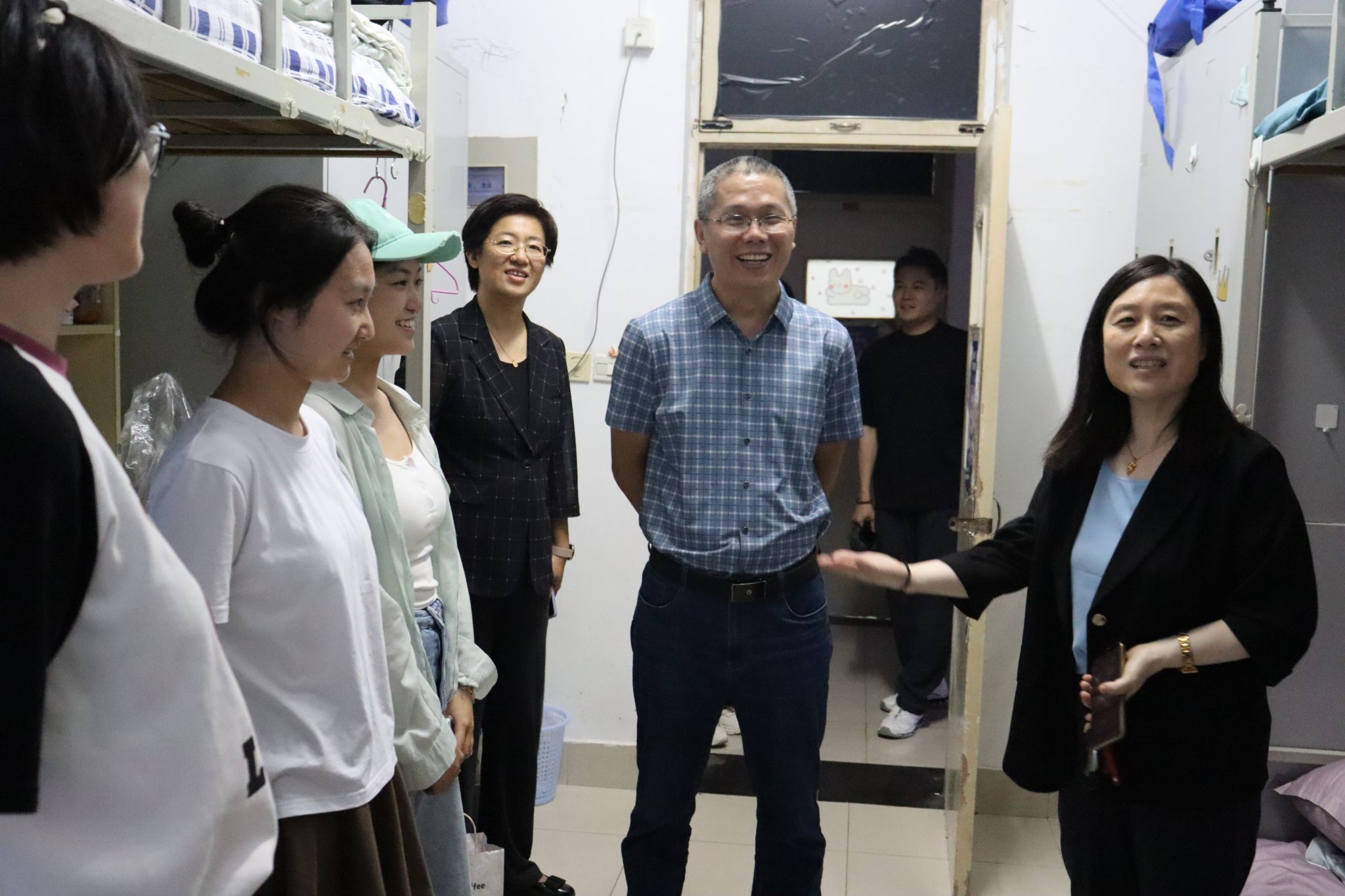 学院领导、老师深入新生宿舍,与新生亲切交流,仔细询问新生们对新环境的适应情况,详细了解学生家庭、学习和生活等情况,耐心倾听他们的困惑,鼓励大家积极融入大学生活、珍惜大学生活,勇敢追逐梦想,勤奋好学,奋力拼搏。让新生们感受到了买球官方网站这个大家庭的温暖与关怀。