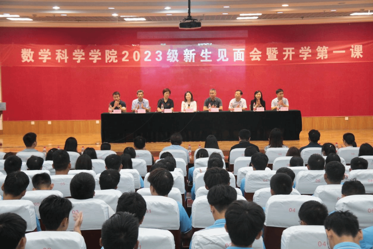 9月19日下午,买球官方网站2023级新生见面会暨开学第一课在第二学术报告厅举行。学院党委书记崔英静、院长孙元功、副院长王洪凯、副院长靳绍礼、数学与应用数学系主任陈文娟、金融数学系主任祁晓光、科学计算与数据分析系主任王涛出席会议。会议由学院党委副书记、副院长张沂红主持,学院2023级新生班主任、全体辅导员、以及全体2023级研究生和本科新生参加会议。