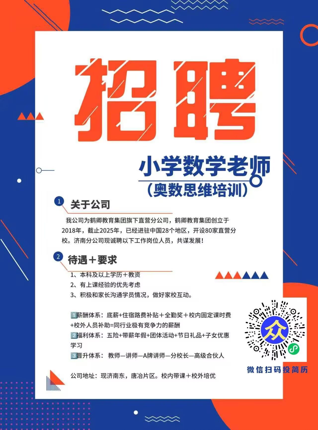 鹤卿教育集团,招聘小学数学老师,主要做奥数思维培训,五险、带薪年假、团体活动、节日礼品、薪酬高