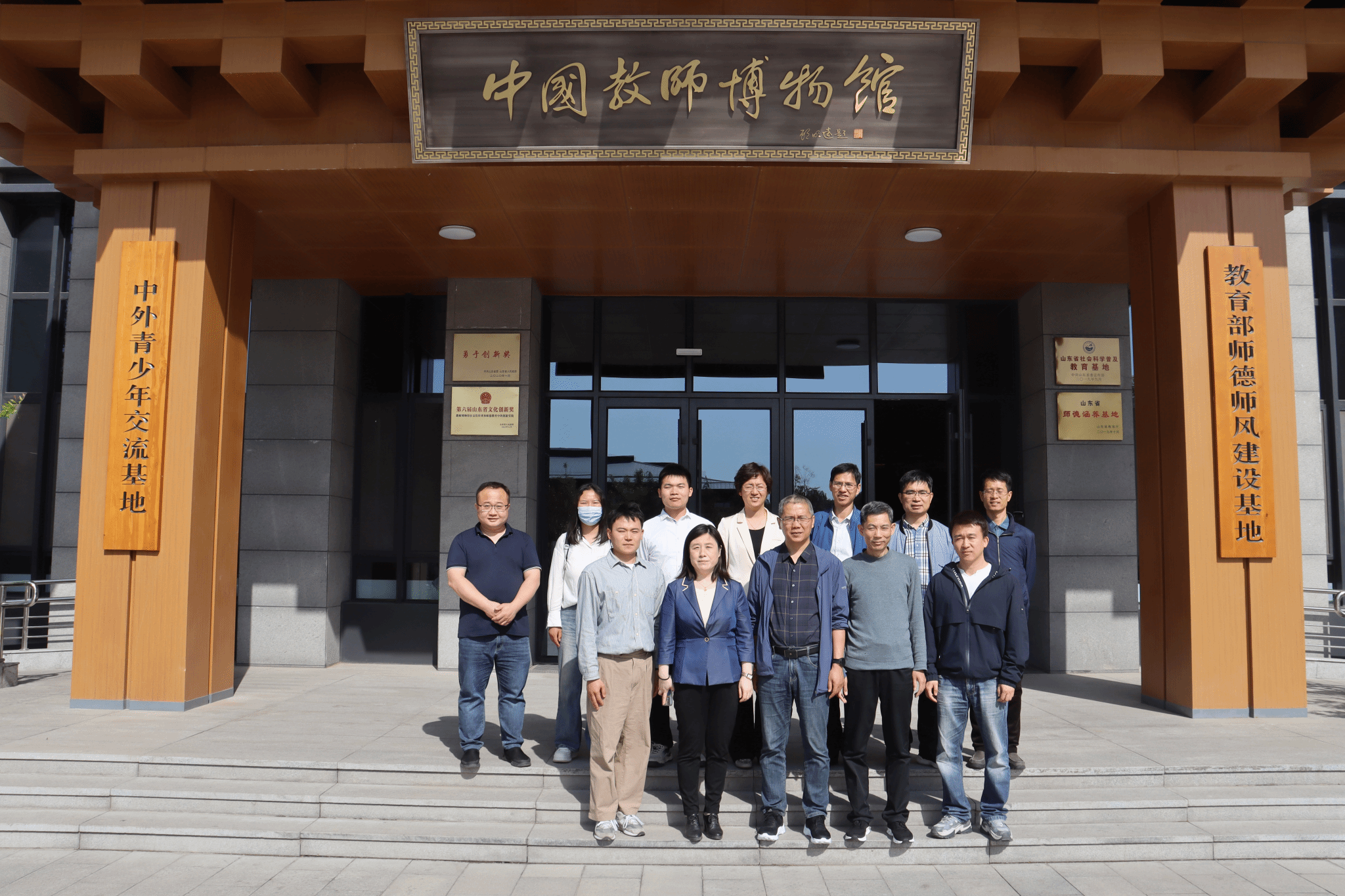中国教师博物馆坐落于孔子故里——山东曲阜,在曲阜师范大学校园内。博物馆以明清建筑风格设计,以“一体两翼”仿古建筑群的形式呈现,系全国首座也是目前唯一教师文化主题、师德教育特色的综合性专题博物馆,是教育部的师德师风建设基地。中国教育学会名誉会长顾明远、人民教育家于漪担任荣誉馆长,设有《教师的历史》《教师的摇篮》《教师的典范》三大常设展览。每位教师认真聆听讲解员介绍,通过一件件珍贵文物和一幅幅生动图片,感受着中国教师的厚重历史;通过一个个生动感人的教育家故事和一组组名师雕塑,感受着优秀教育家的无私奉献精神和崇高师德风范。大家深受启发,表示将继承和弘扬优良师道精神,在教书育人实践中铸就优良师德师风。