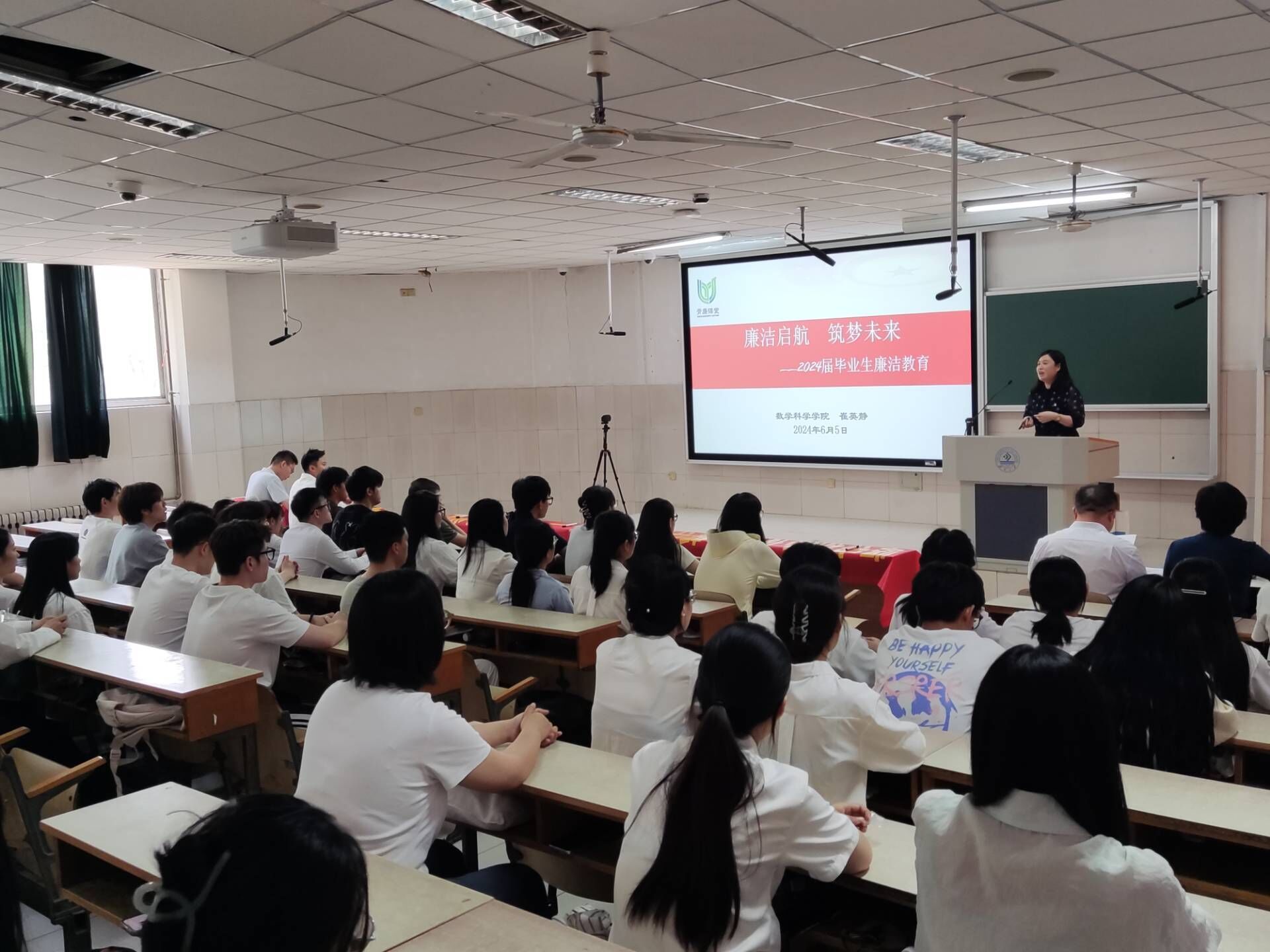 为推动党纪学习教育走深走实,落实立德树人根本任务,引导毕业生党员系好廉洁入职“第一粒扣子”,按照学校相关要求部署,买球官方网站党委于6月5日下午在第二教学楼104教室开展以“坚守初心使命 誓守廉洁之风”为主题的2024届毕业生党员廉洁教育活动。买球官方网站党委书记崔英静,党委副书记、副院长张沂红,组织员、辅导员和全体毕业生党员共同参加活动。